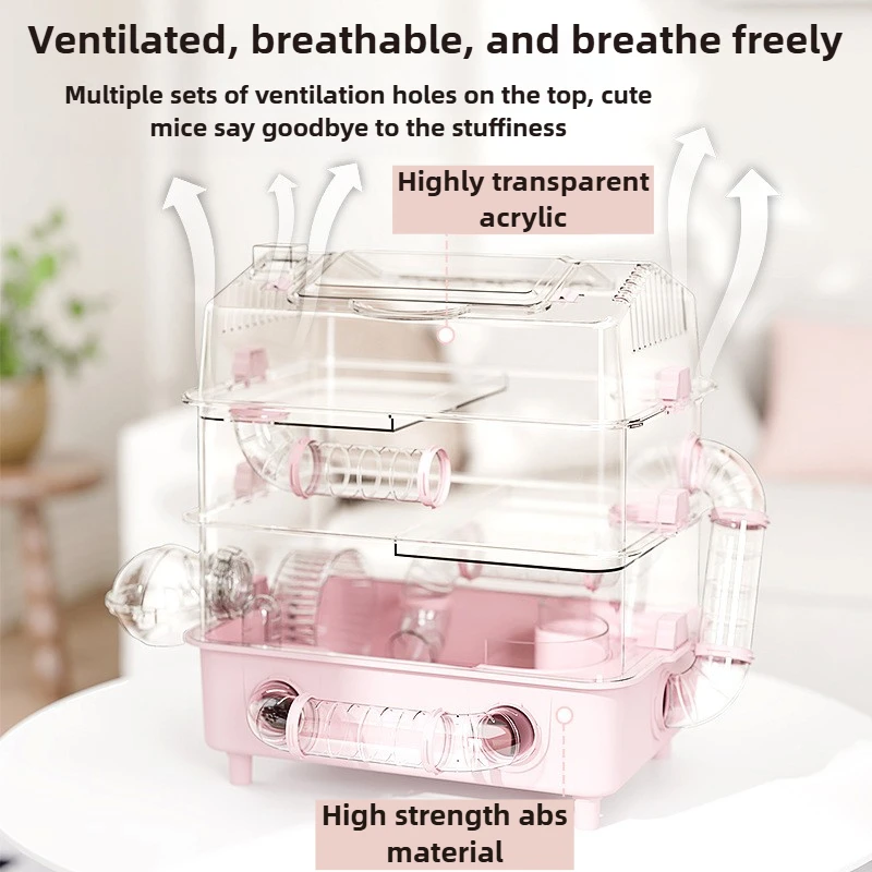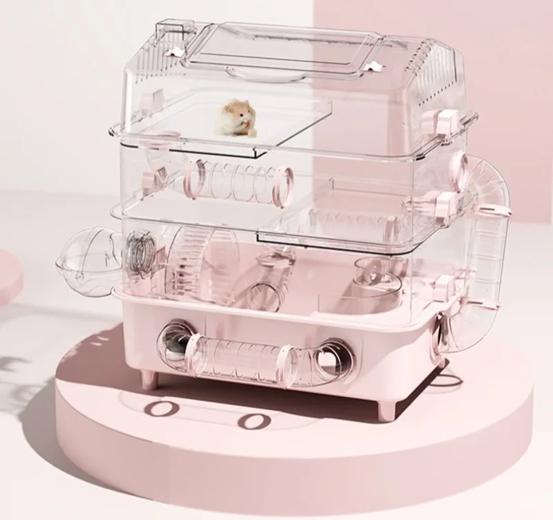 Jaula para hámster de 1/2/3 pisos, túnel para interiores, jaula para hámster transparente acrílica, Villa, nido de oso dorado, jaulas grandes para animales pequeños