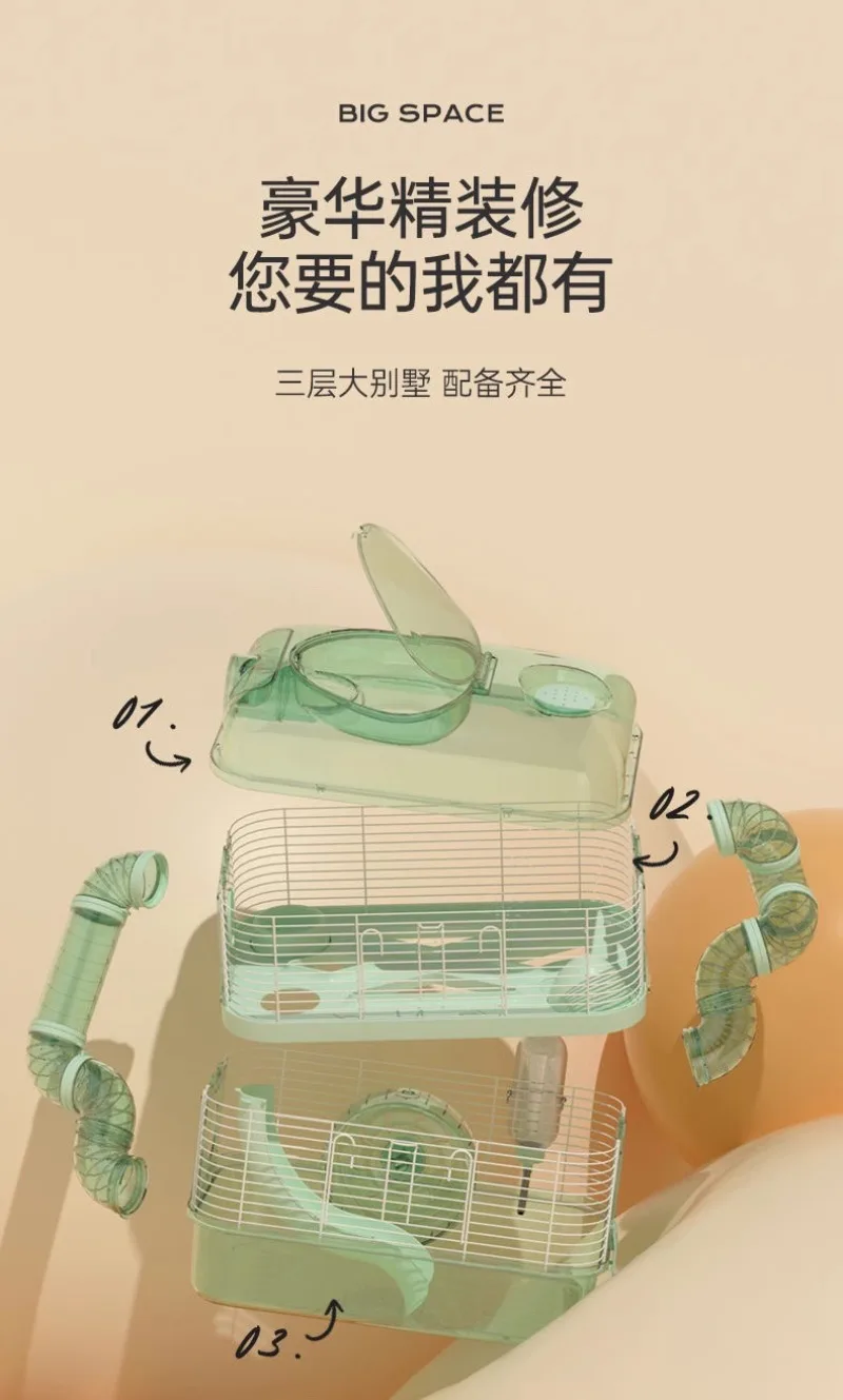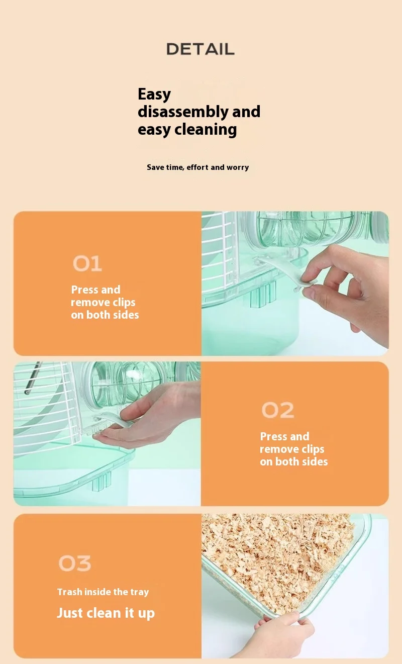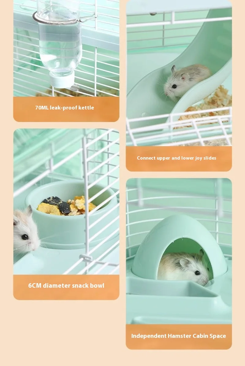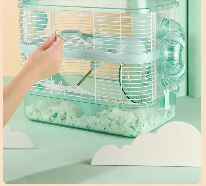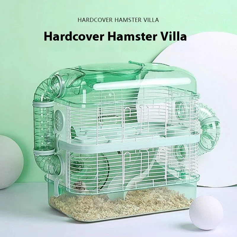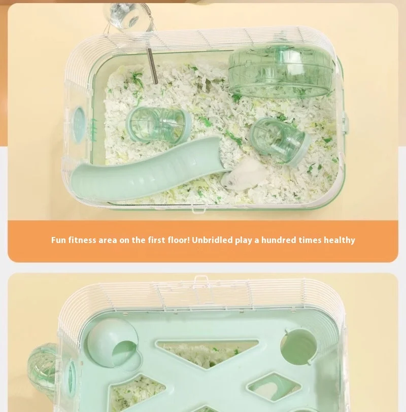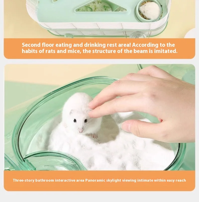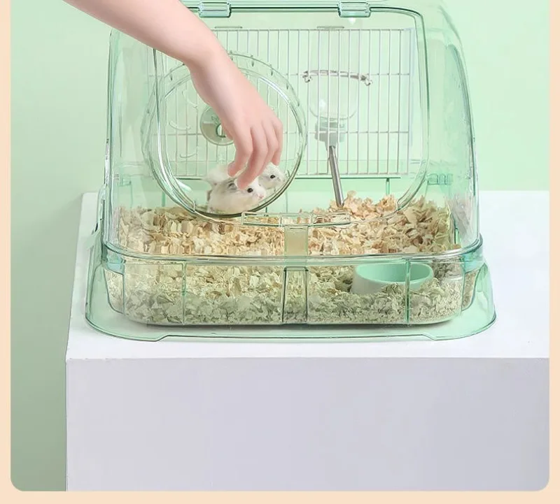 Jaula para hámster de lujo, acrílico transparente, panorámica, 3 capas, hilo dorado, oso, transpirable, impermeable, accesorios especiales para jaula