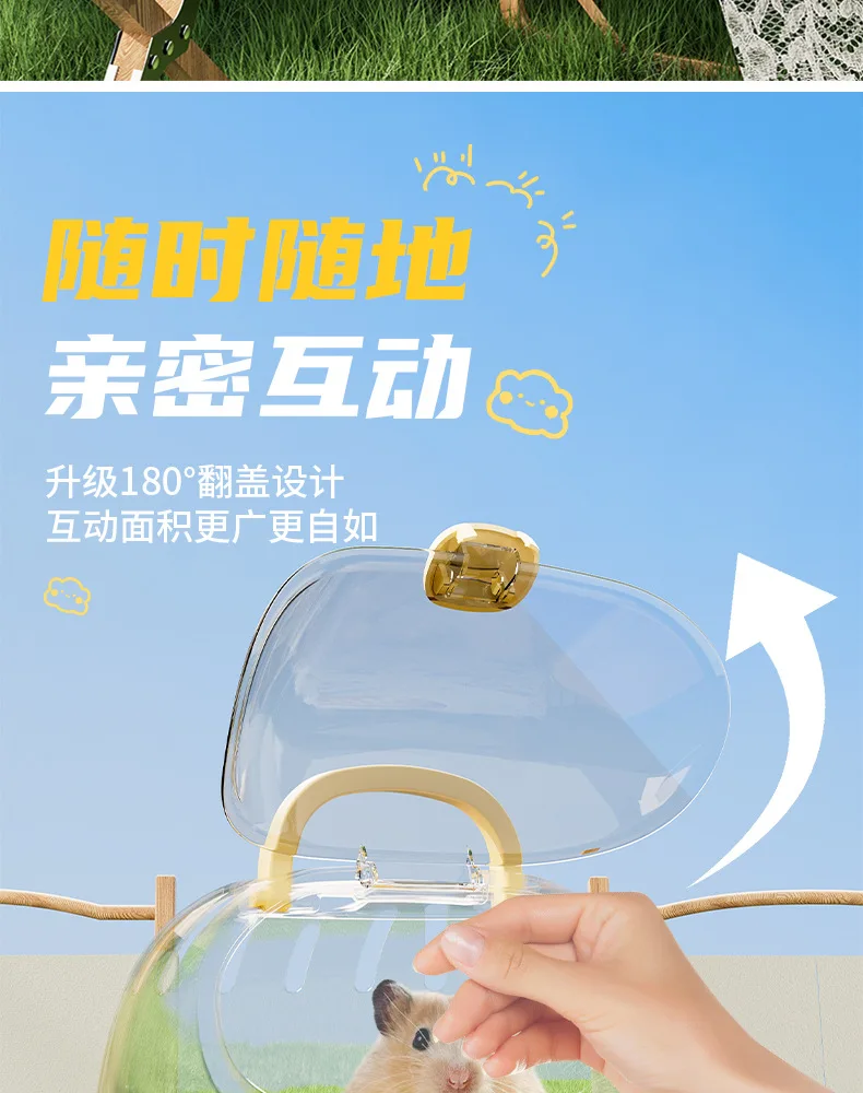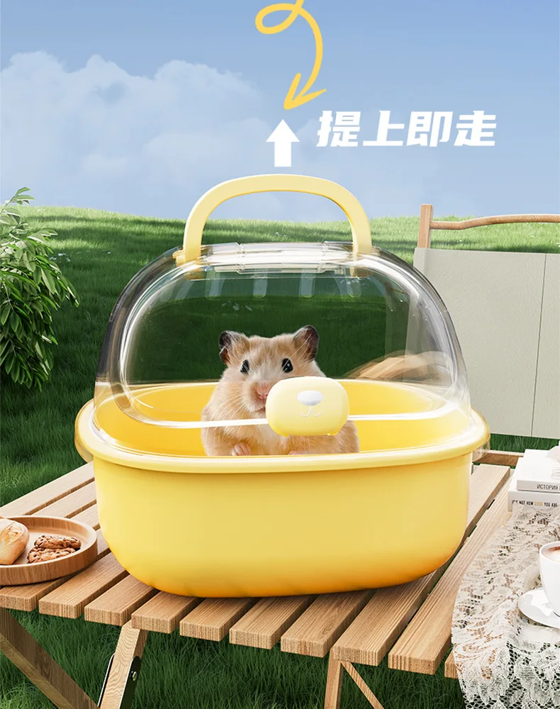 Jaula para llevar para hámster, casa de lujo para salir, rama de flor transparente, ratón, oso dorado, bolsa panorámica para llevar, suministros para mascotas
