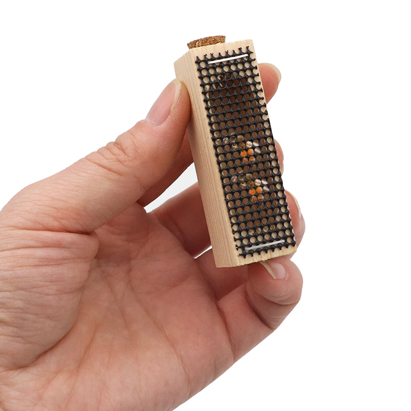 Características del producto -Hecho de material de alta calidad para un uso prolongado y duradero. -El producto está hecho de madera y no se daña fácilmente por las abejas. -El producto tiene una malla de alambre para la ventilación, lo que mejora en gran medida la tasa de supervivencia de las abejas. -Gran herramienta accesoria de apicultura. -Es una gran jaula de control de abeja reina para su abeja; y no puede lastimarla.