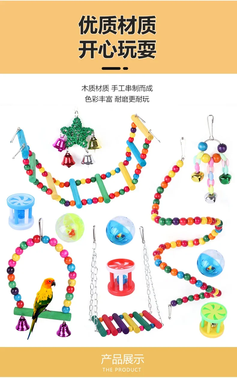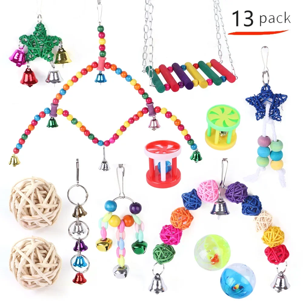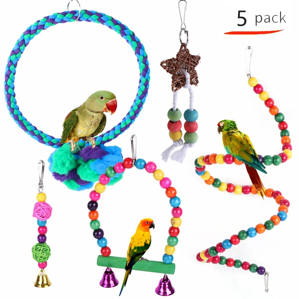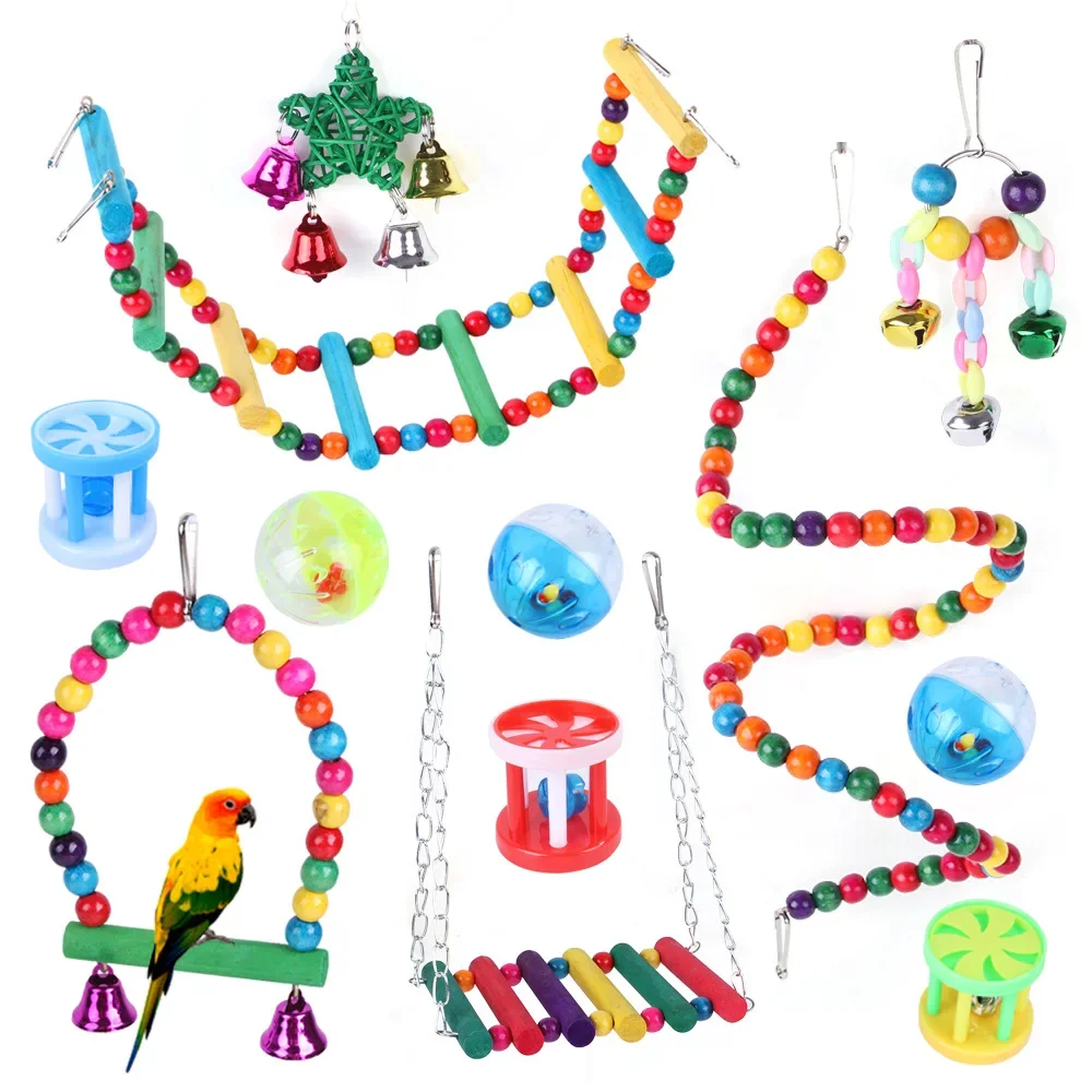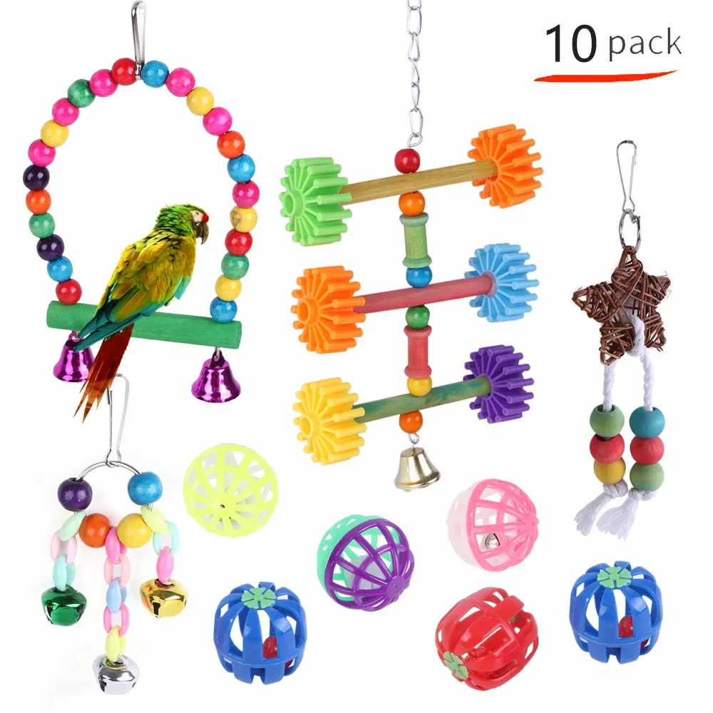 Jaula de madera para loros, columpio masticable fiable, puente de mordida, cuentas de madera, forma de juguete para loros, 5/8/10/12 paquetes