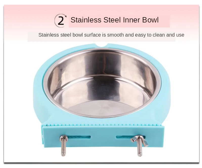 Pet Cage Hanging Stainless Steel Food Bowls Feeder Adjustable Height Fixed Cat Bowl Puppy Feeding Supplies Pet Accessories