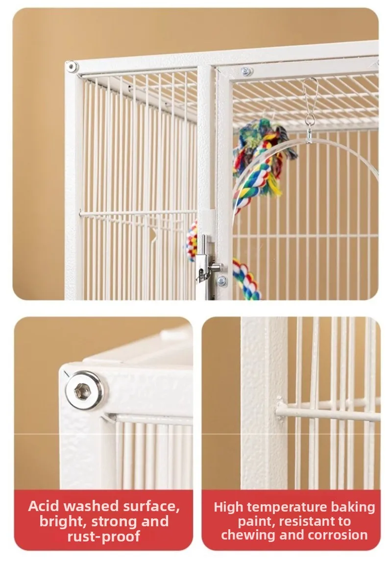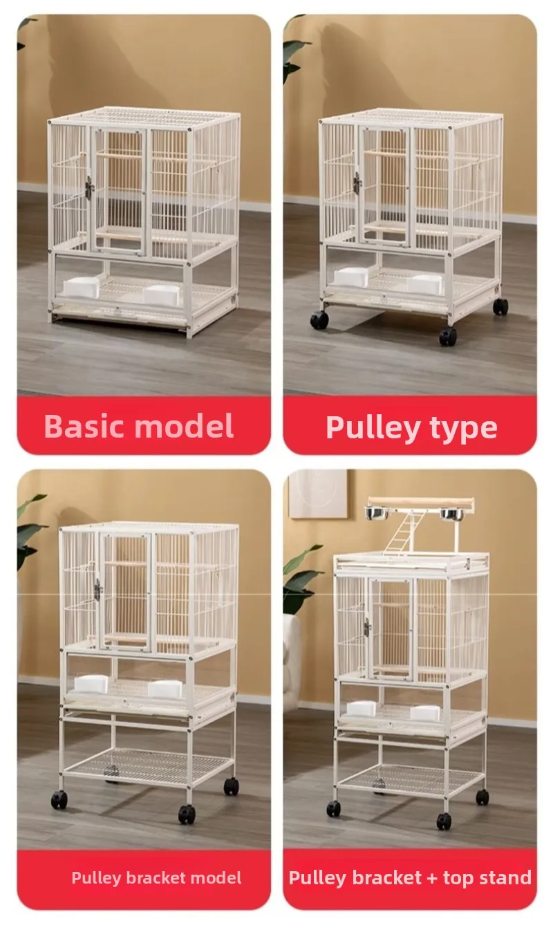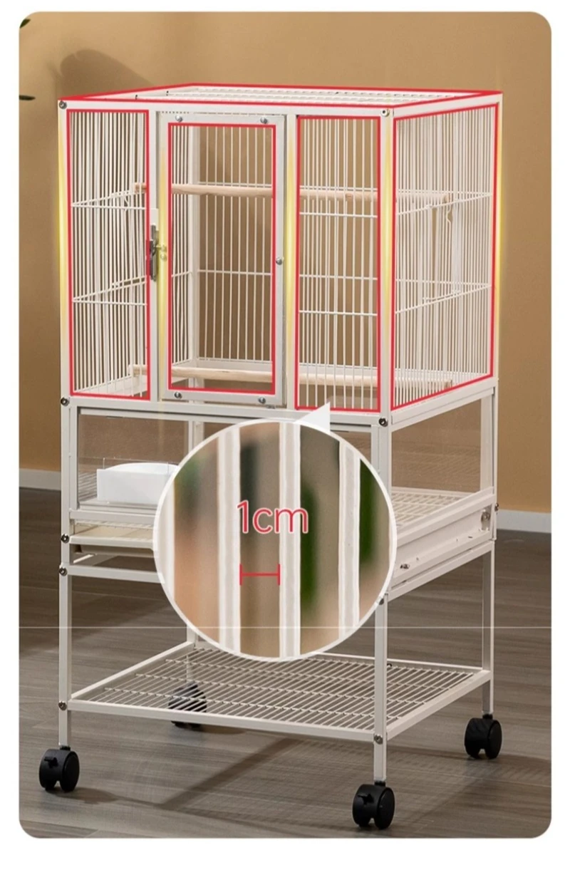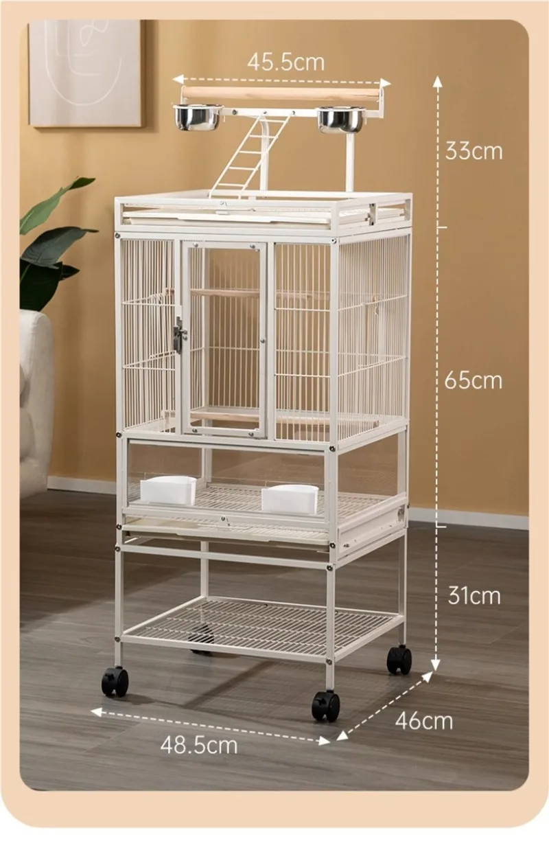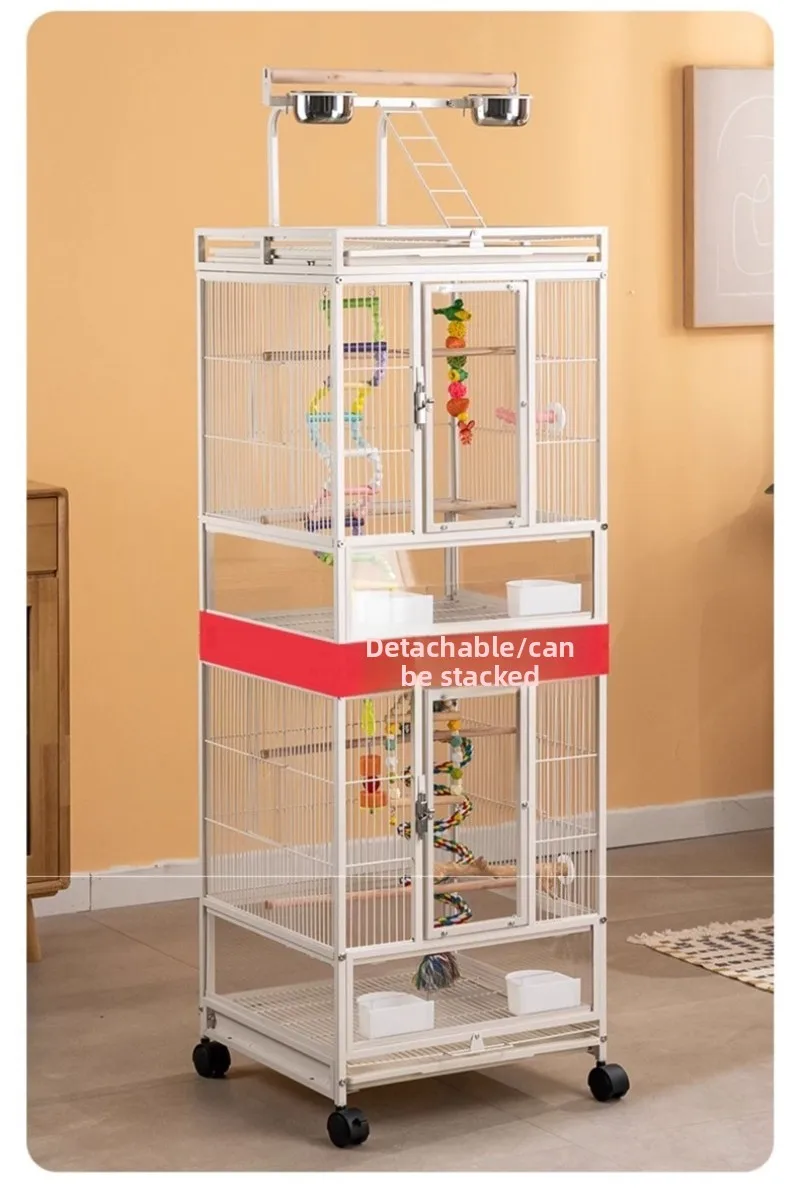 Jaula de Metal para loros y pájaros con ruedas, villas grandes para el hogar, suministros de alimentación multifuncionales fáciles de limpiar, accesorios