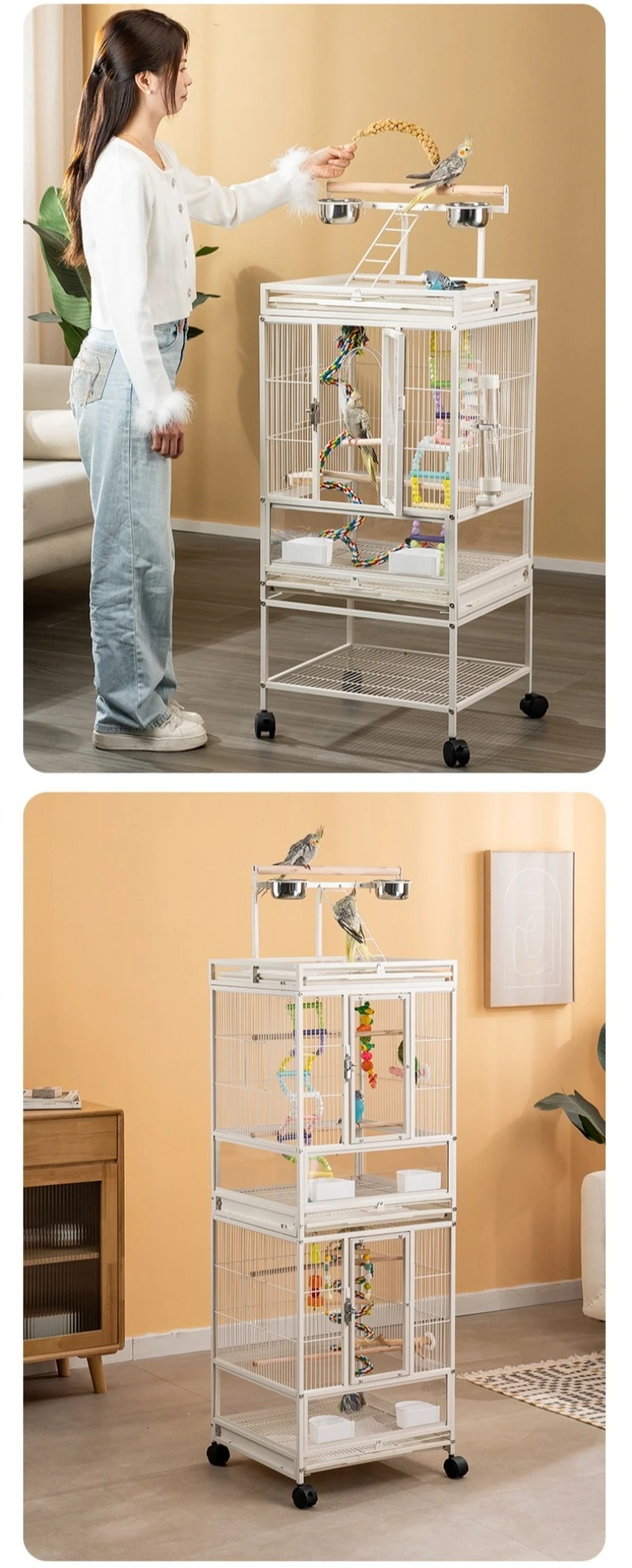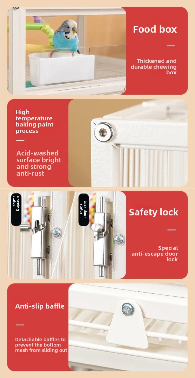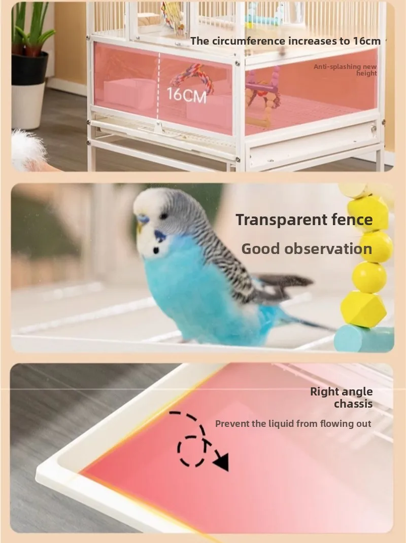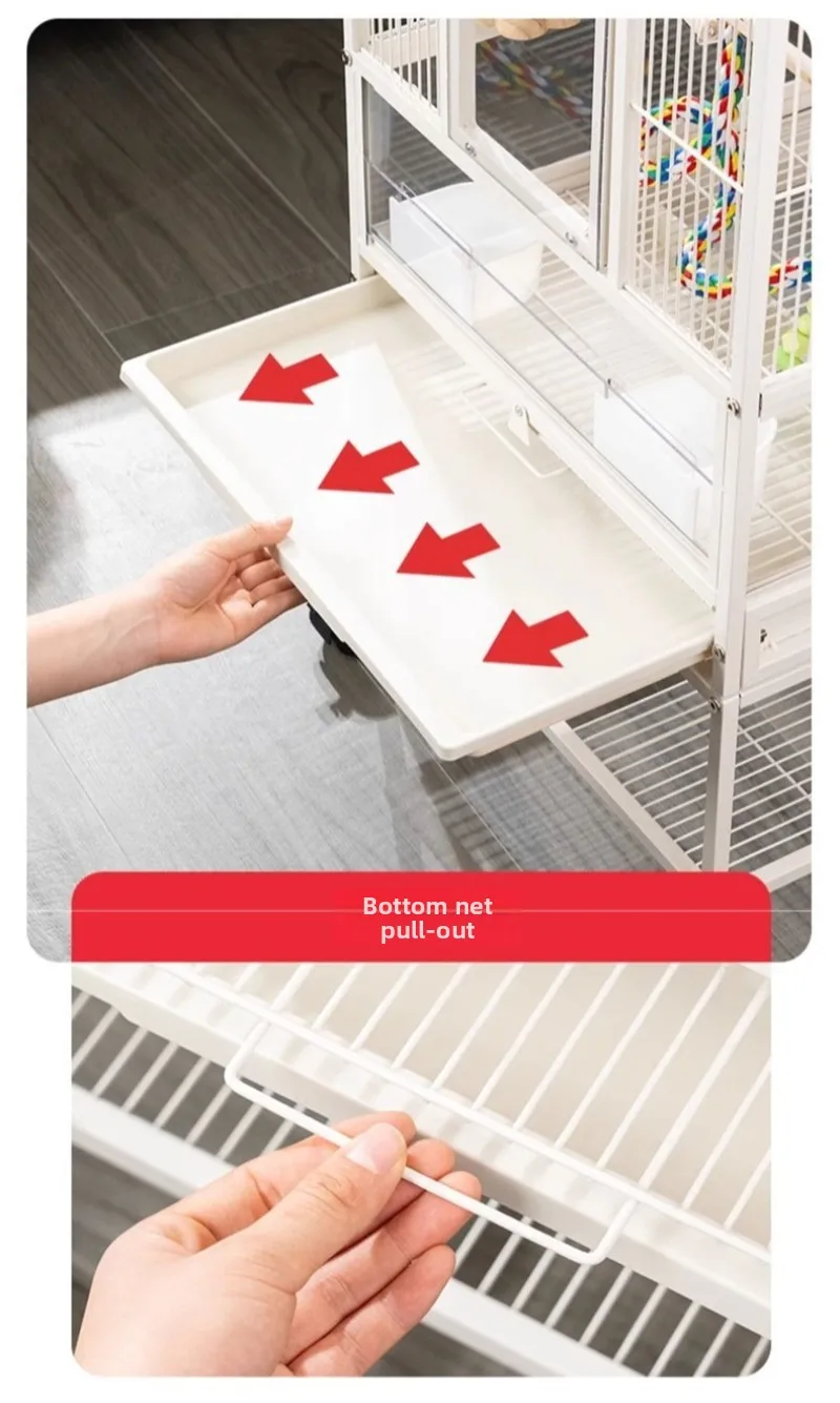 Jaula de Metal para loros y pájaros con ruedas, villas grandes para el hogar, suministros de alimentación multifuncionales fáciles de limpiar, accesorios