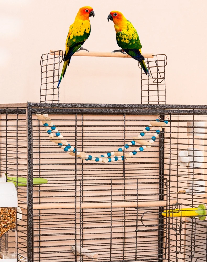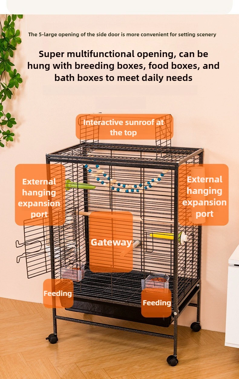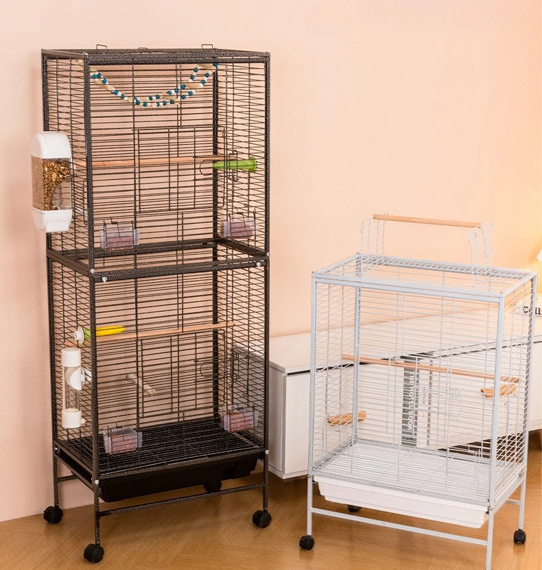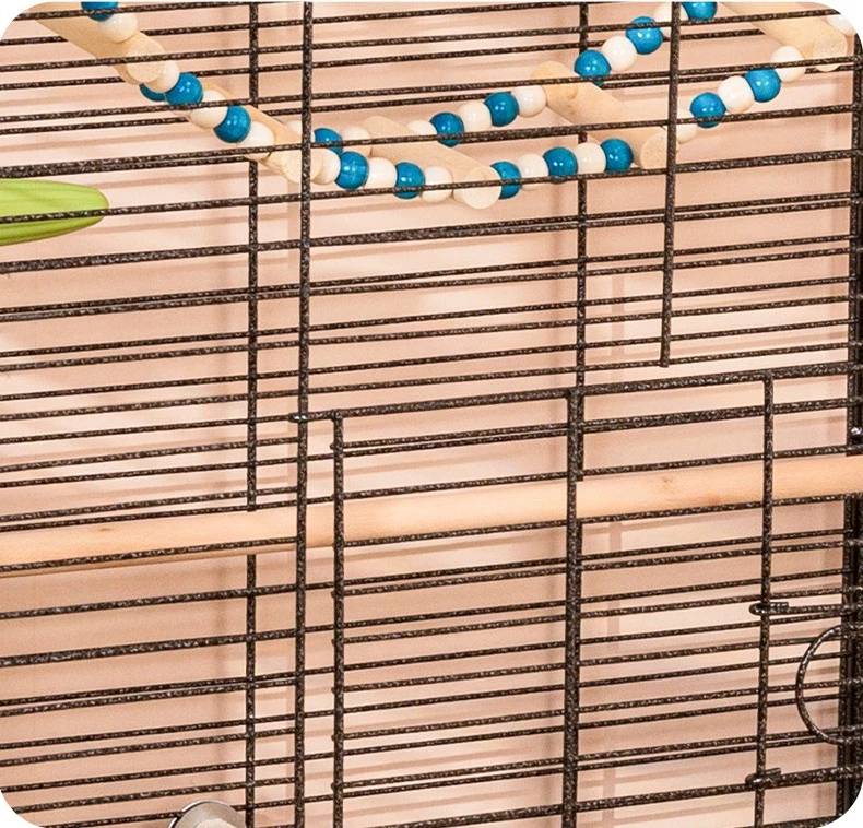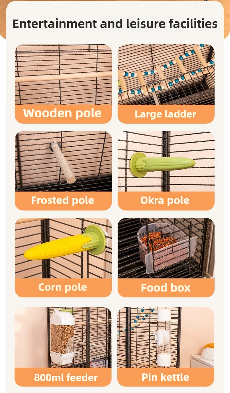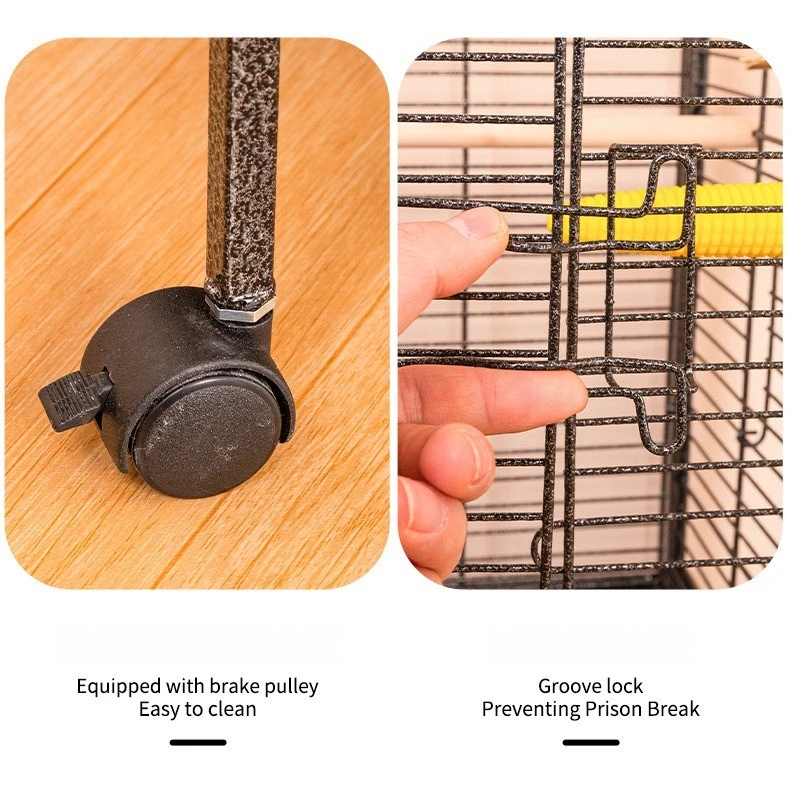 Características: (1) La bandeja de profundización de tipo dividido acepta la pelusa y los excrementos de pájaros no se preocupan. Bandeja independiente, conveniente para la limpieza, profundización y aumento diarios para garantizar que la pelusa fecal caiga en la bandeja. (2) Diseño de alambre cruzado, diseño antideslizante sin restricciones, fácil de escalar La superficie de la pintura cóncava y convexa adopta un proceso de pintura mate y se selecciona el diseño de partículas antideslizantes de la pintura. (3) con polea de freno para una fácil limpieza (4) Bloqueo de ranura, anti-jailbreak