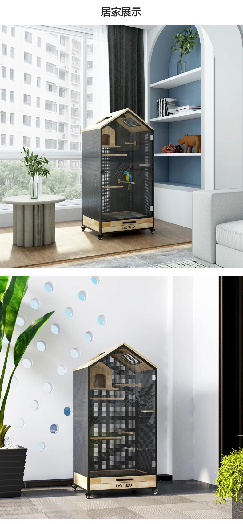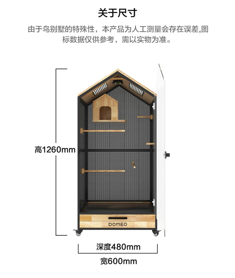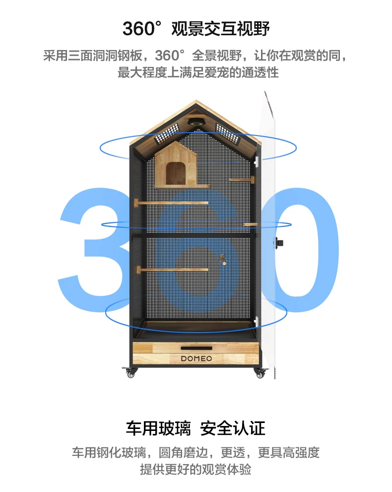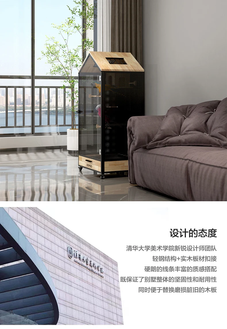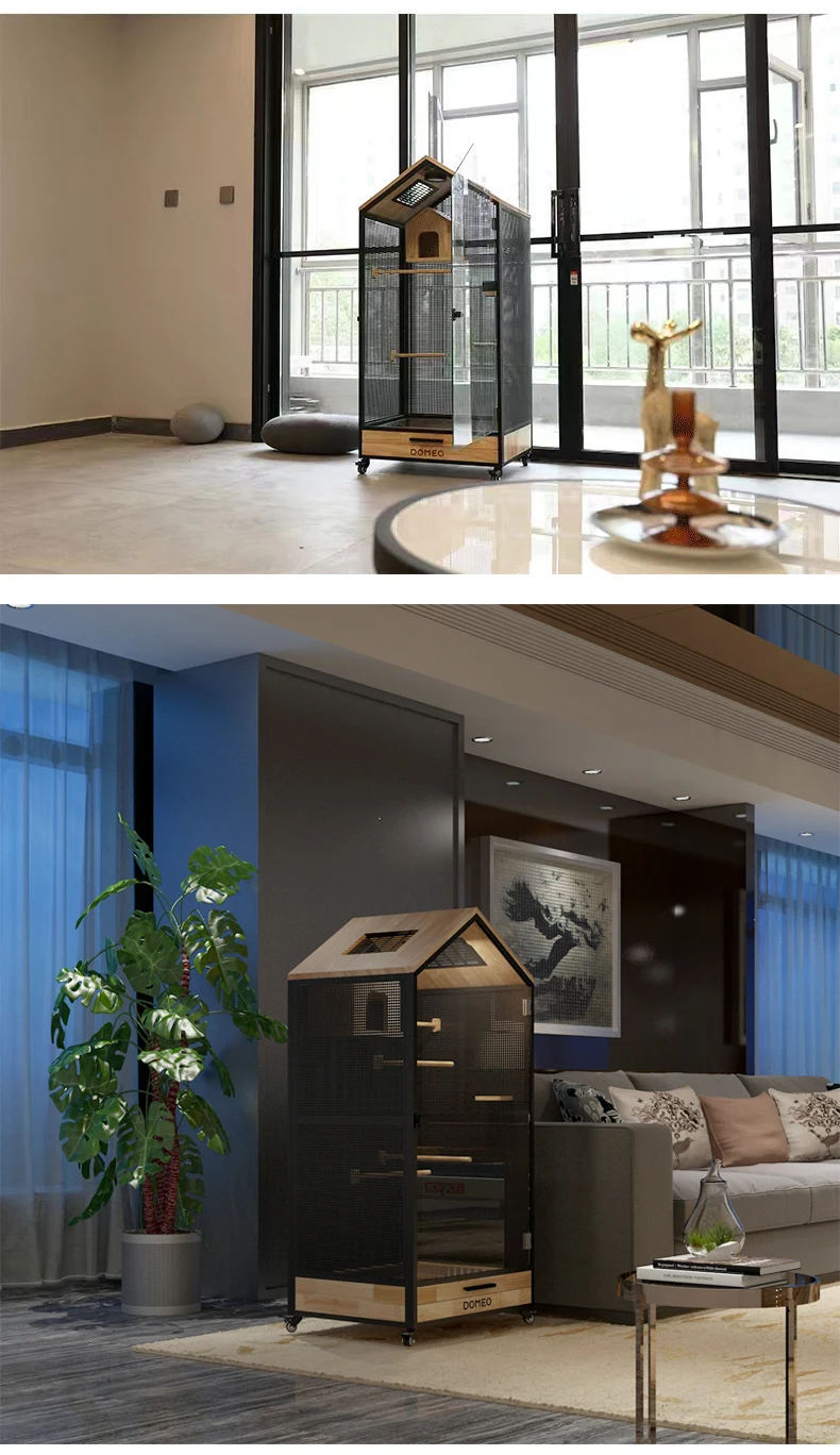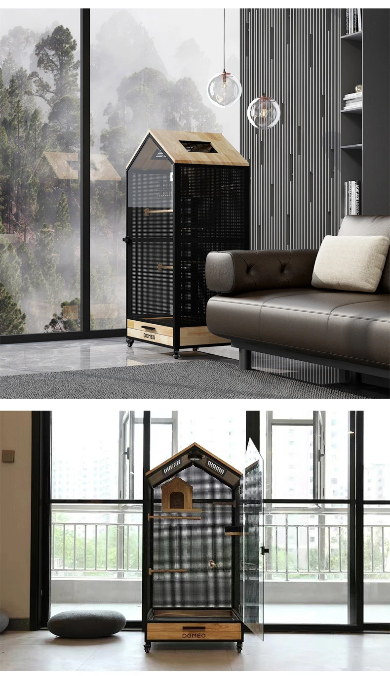 Jaula panorámica para loros y Villa pequeña para mascotas, madera maciza de lujo, casa ecológica para pájaros, casa Totoro