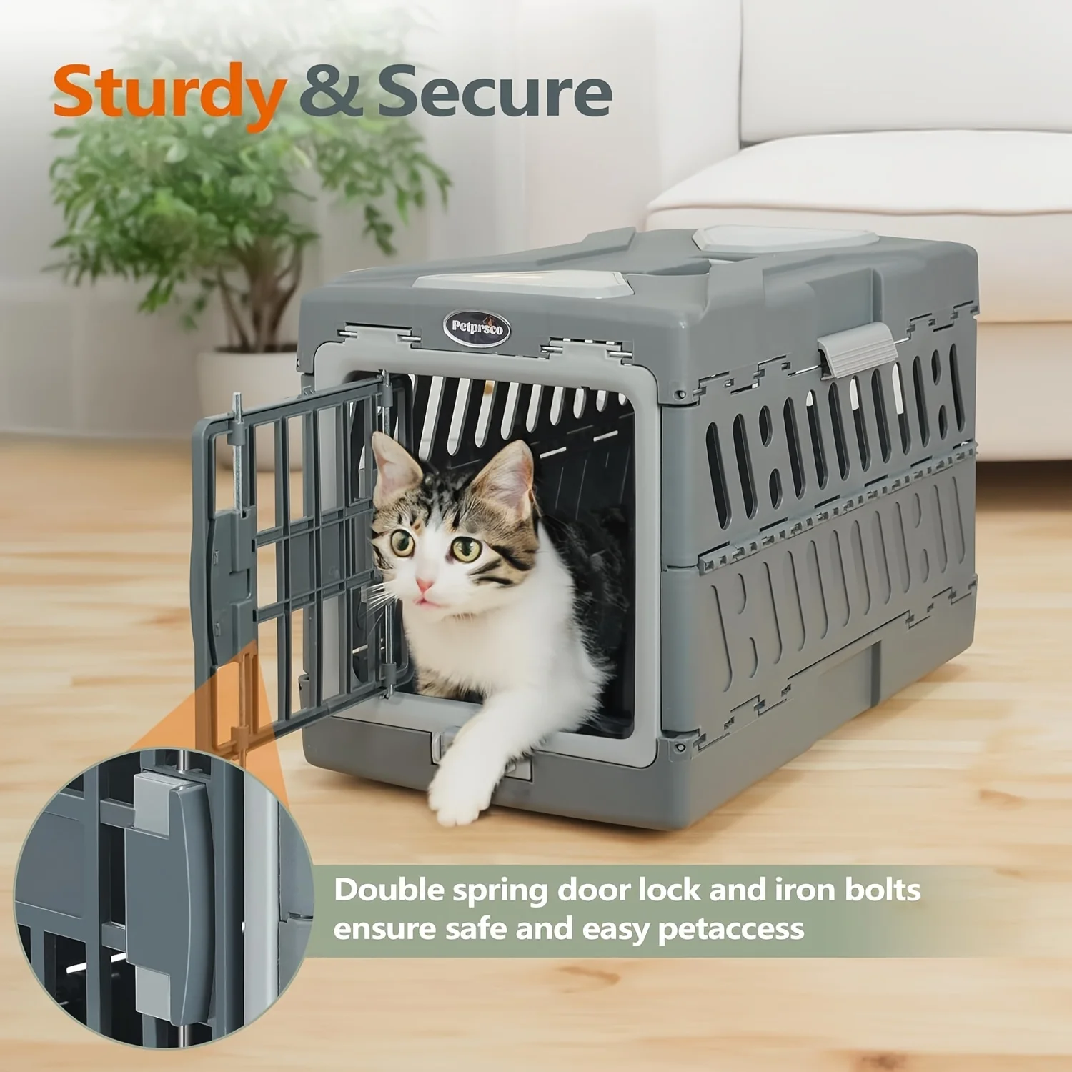 FUNCIONAL: El cómodo asa de transporte y el compartimento superior de fácil acceso para golosinas, juguetes y otras necesidades para mascotas hacen que esta jaula sea más cómoda de usar mientras viaja