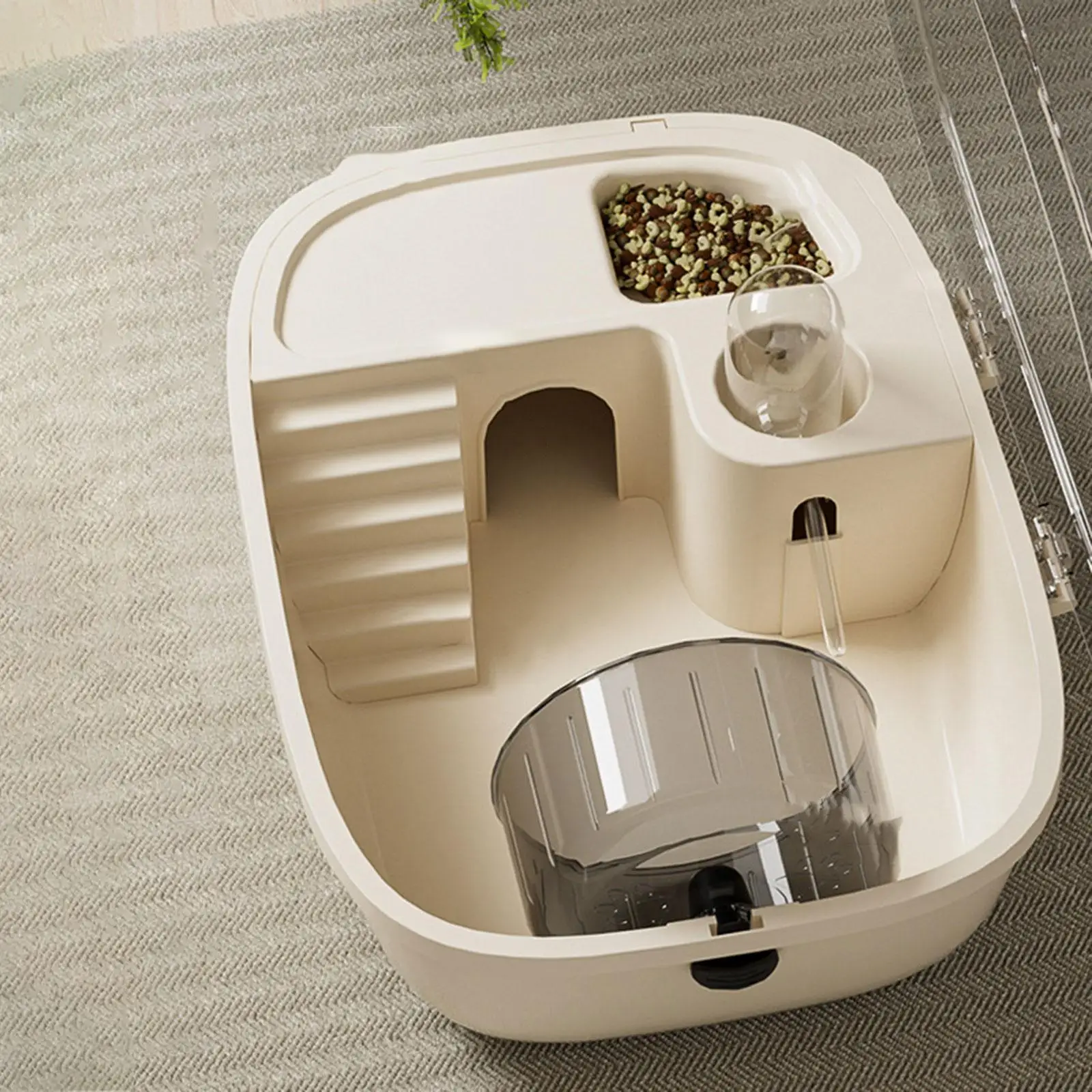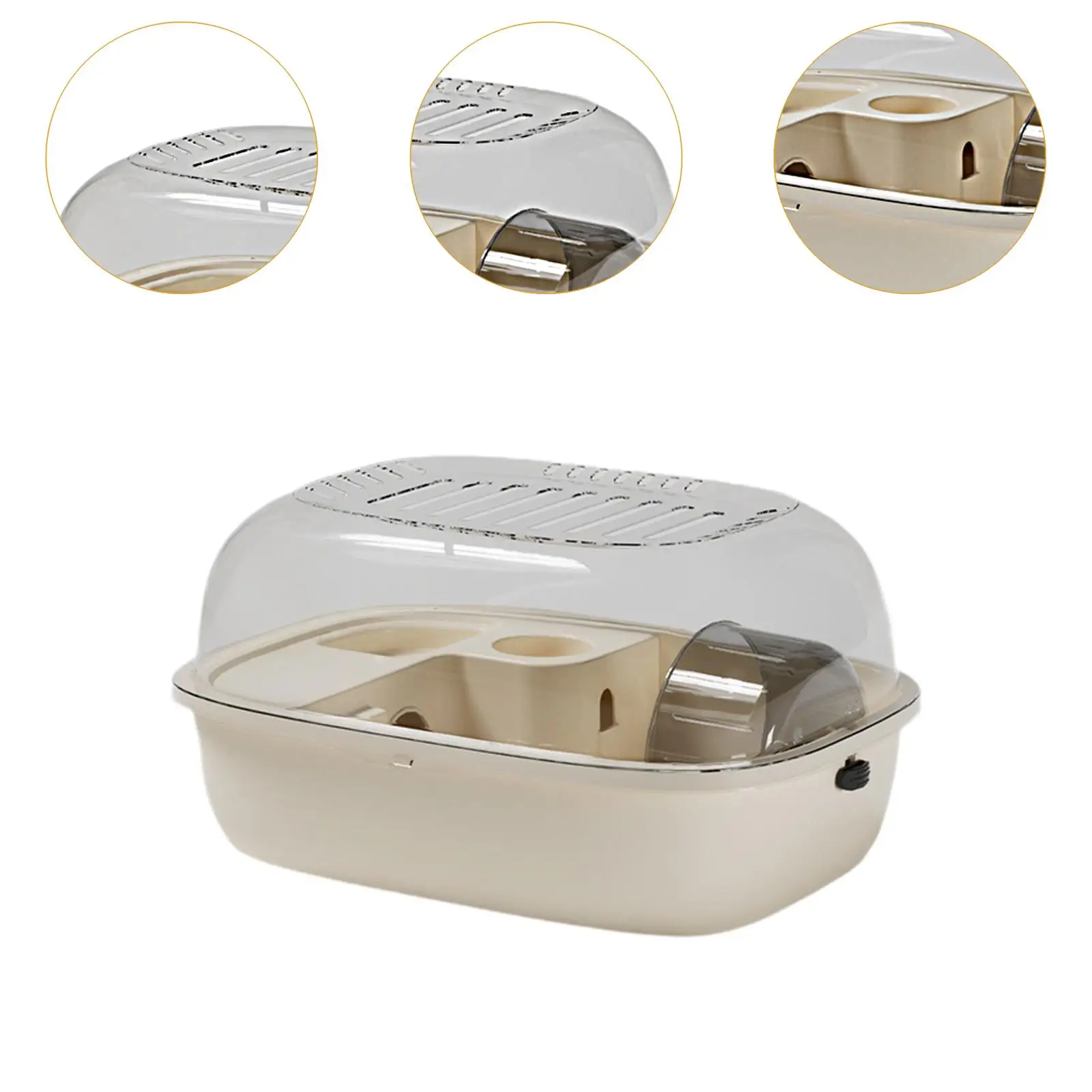 Función de ventilación: el hábitat para hámster está equipado con una tragaluz que se puede abrir y ranuras de ventilación en la parte superior, lo que le permite interactuar fácilmente con su mascota mientras mantiene el aire fresco circulando y minimiza el olor.