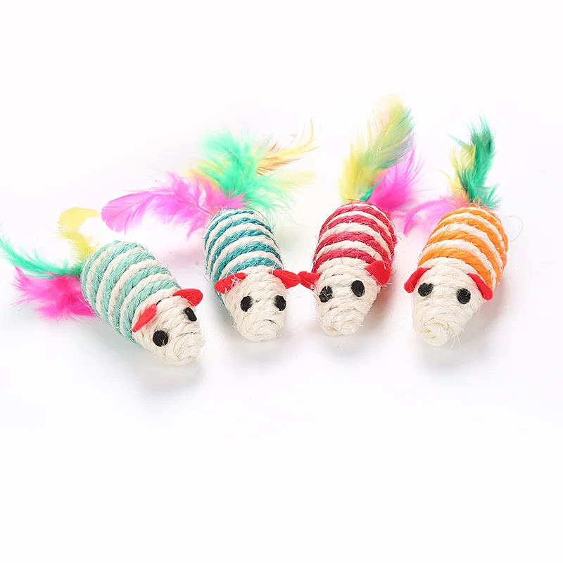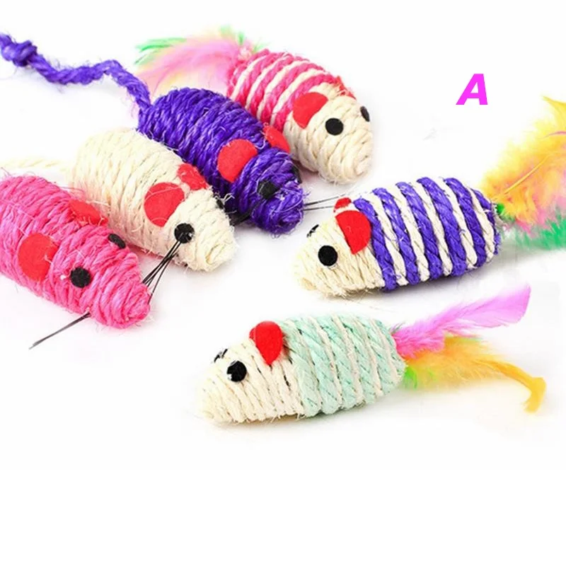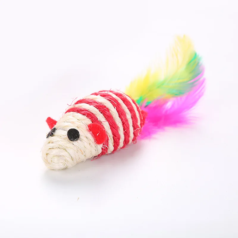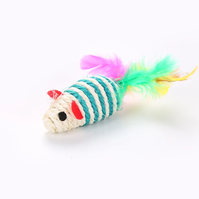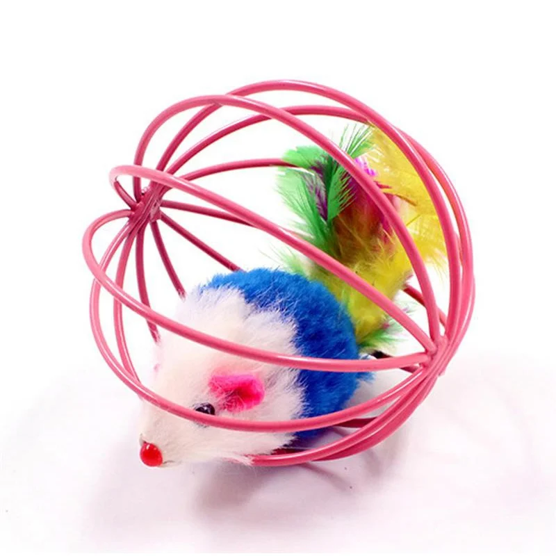 Jaula de ratón de juguete interactivo para gatos, palo Teaser de plumas, varita de juguete con campana pequeña, bola pequeña de fieltro colorida, suministros para mascotas