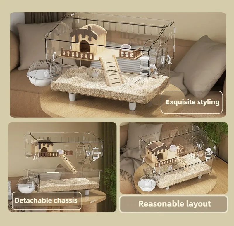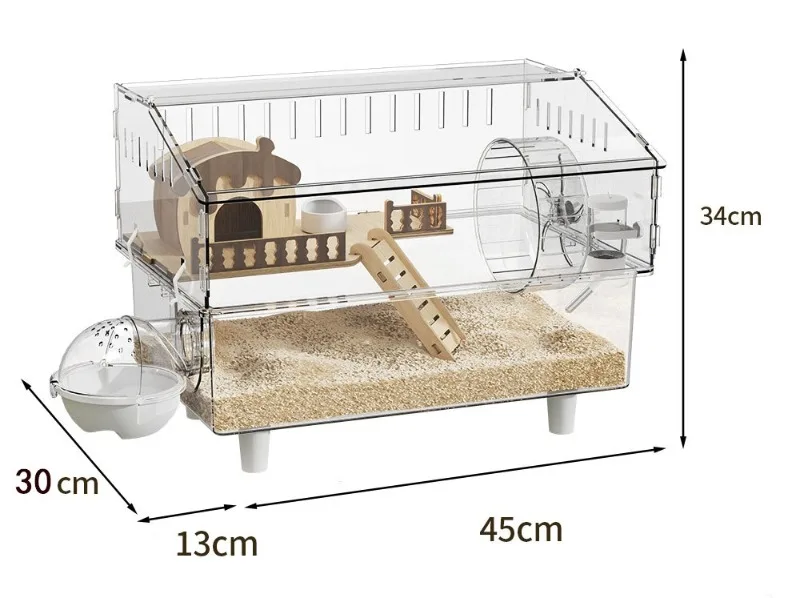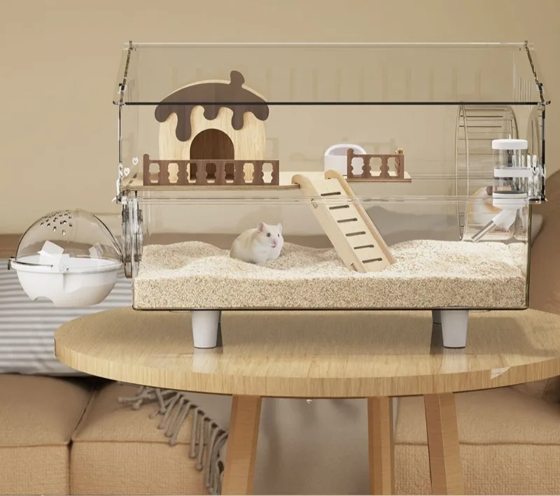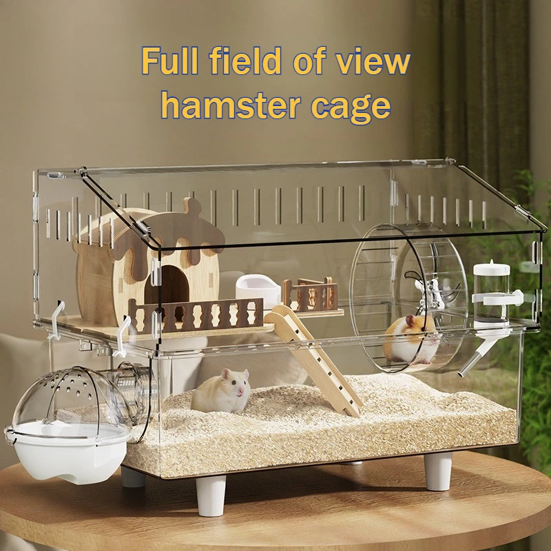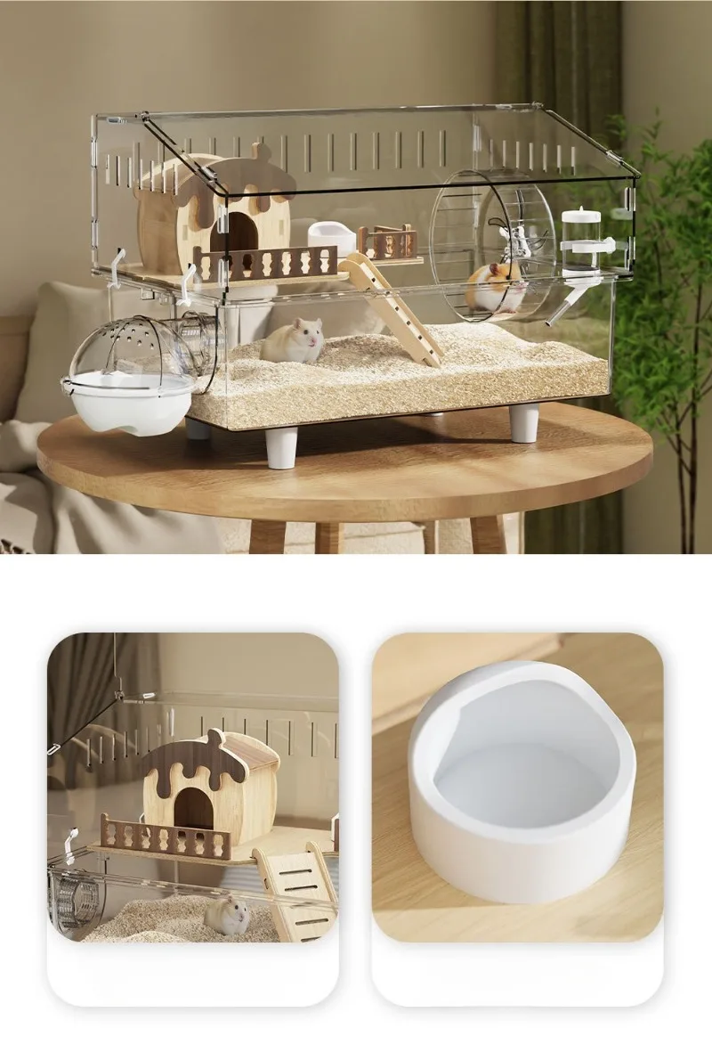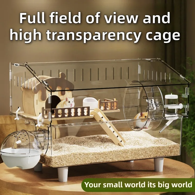 Jaula transparente para hámster, jaulas grandes de lujo para hámster, accesorios para casa escondite con baño, casas con ruedas para hámsteres