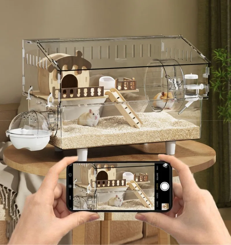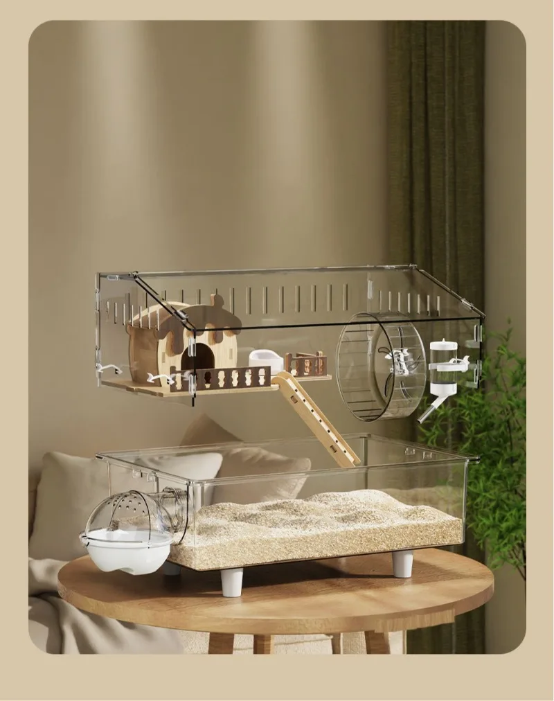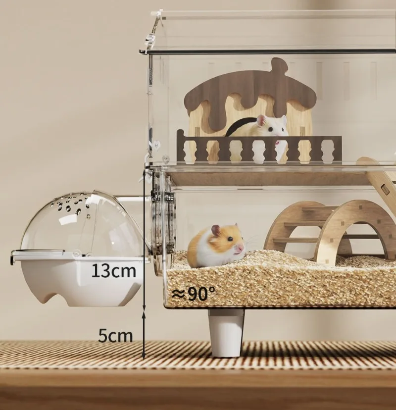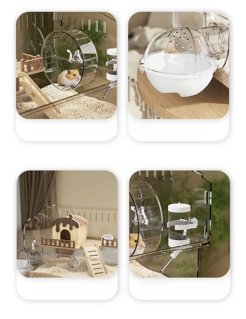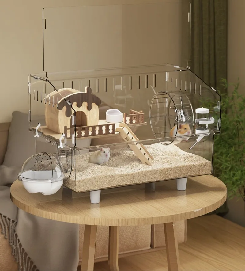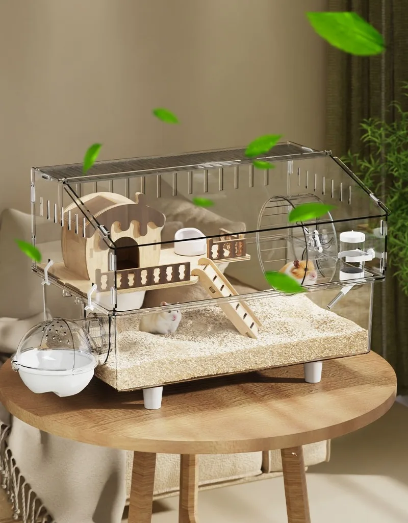 Jaula transparente para hámster, jaulas grandes de lujo para hámster, accesorios para casa escondite con baño, casas con ruedas para hámsteres