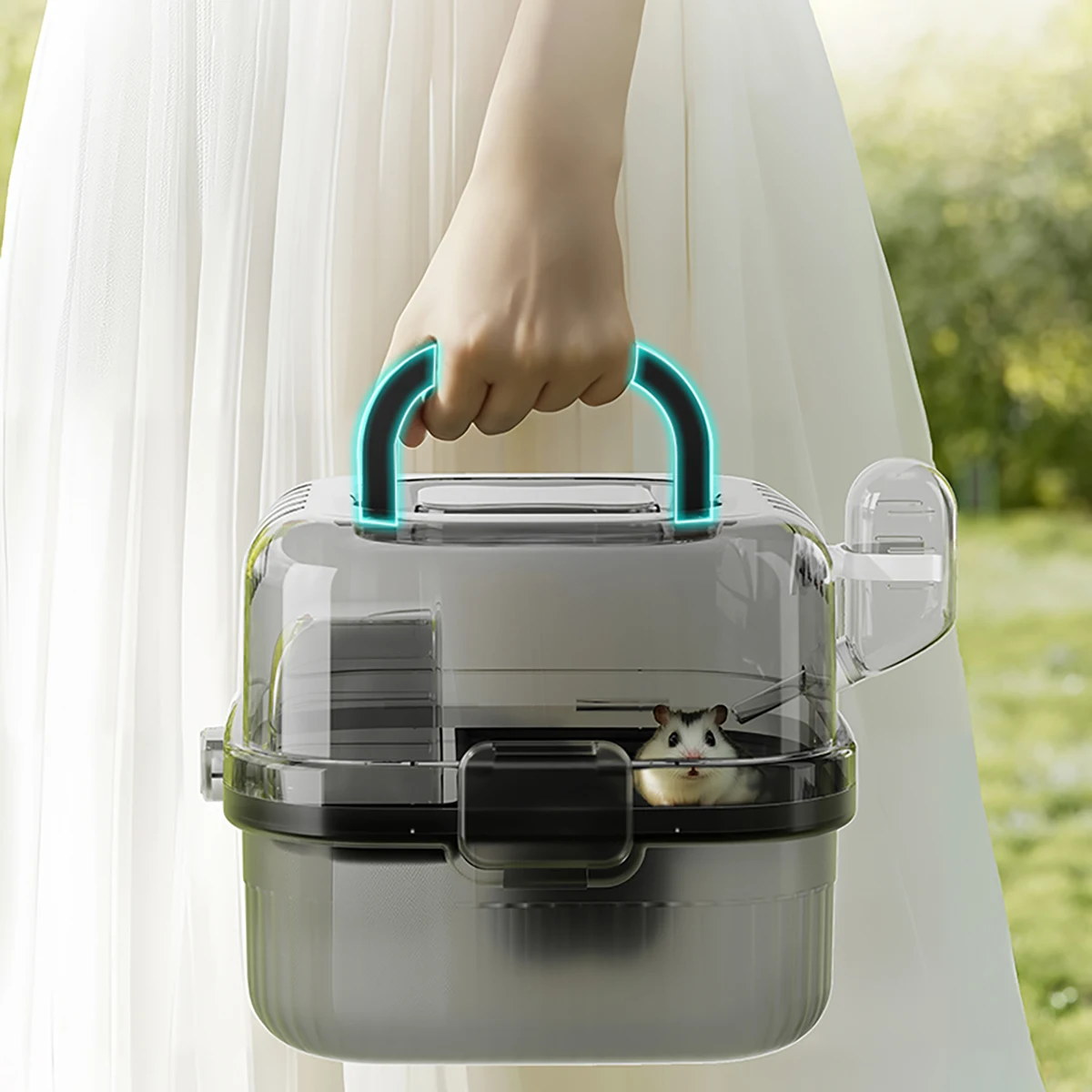 Jaula de transporte para hámster al aire libre, jaula portátil para hámster con tapa grande transparente para transporte de pájaros y hámster, suministros para mascotas