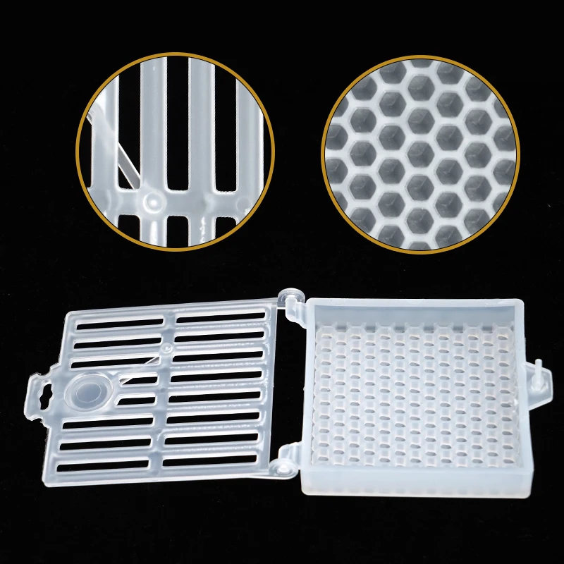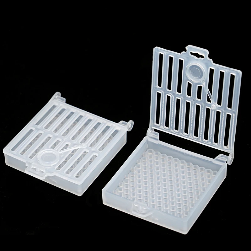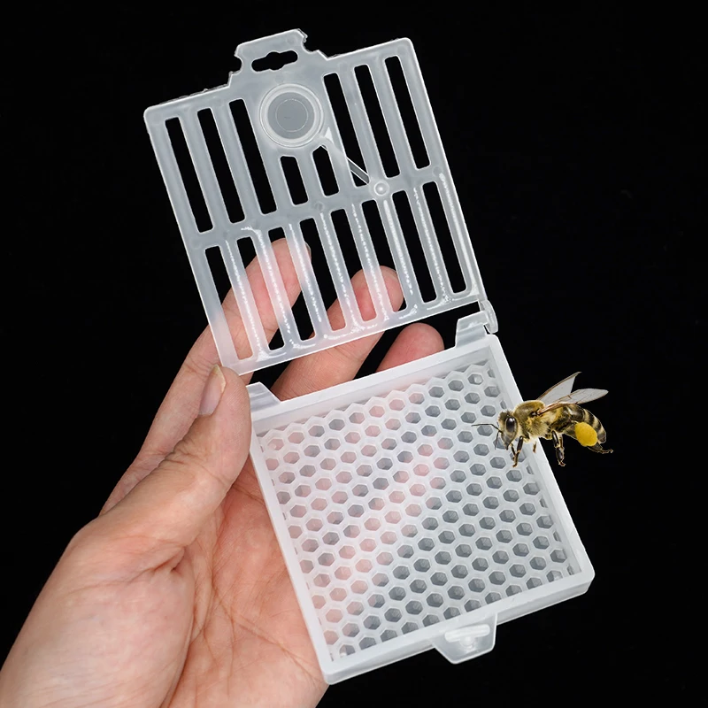 Transporte de apicultura, jaulas de Reina, nuevo diseño, jaula de poste de abeja, caja transparente con hoja de base de peine, suministros de herramientas de cría de Reina
