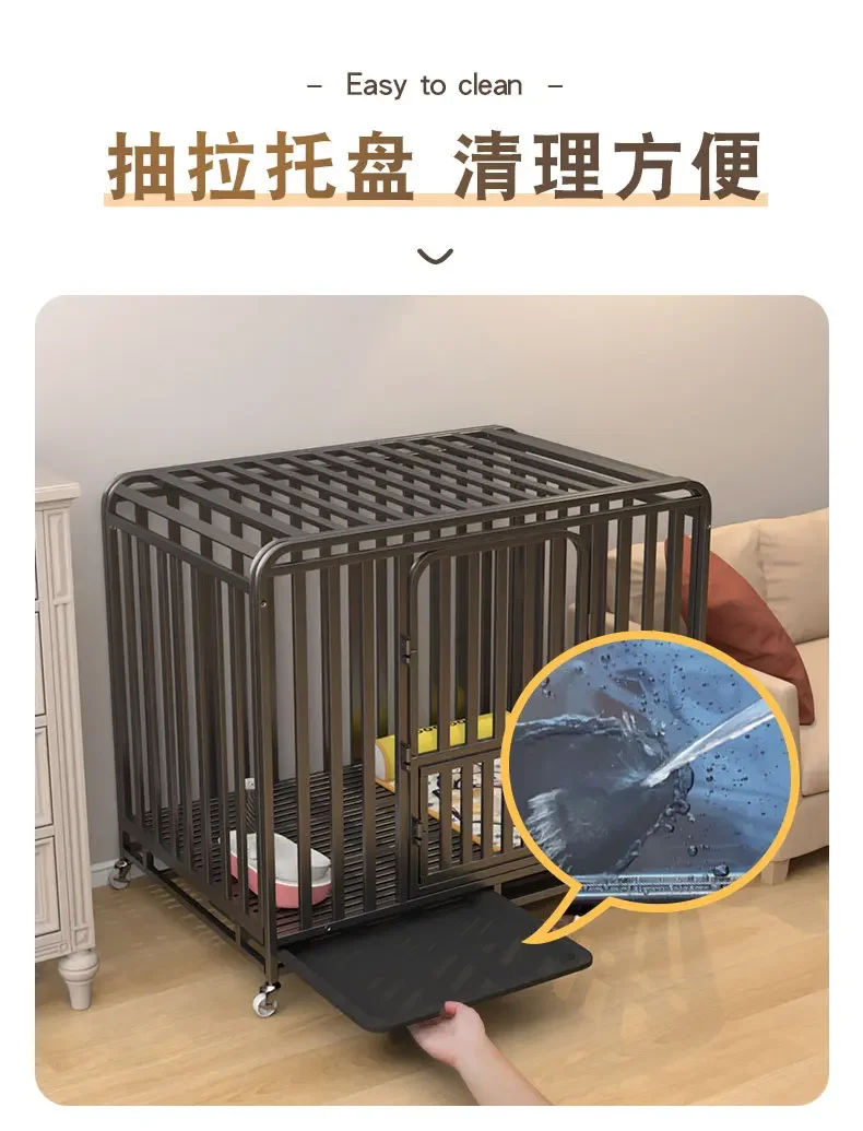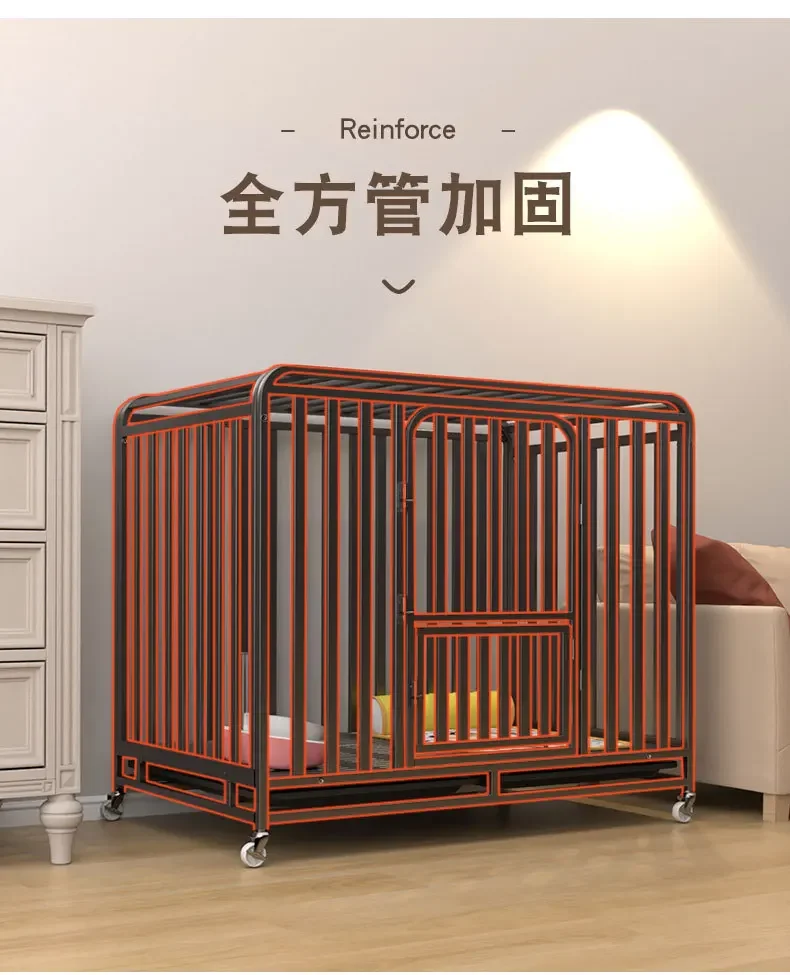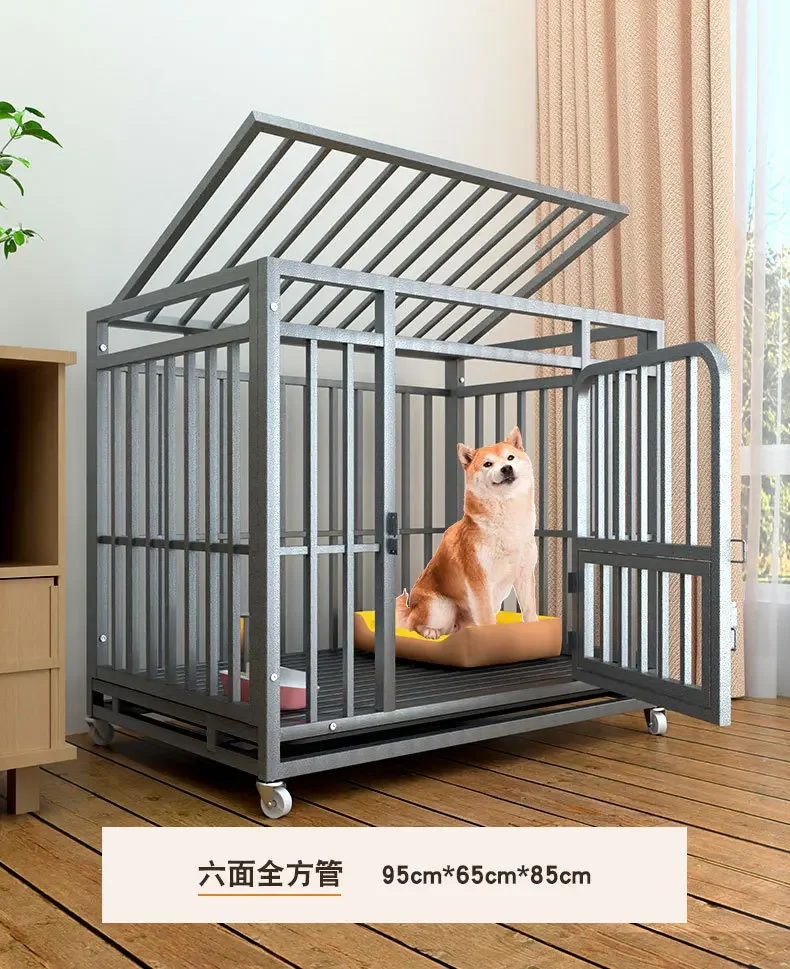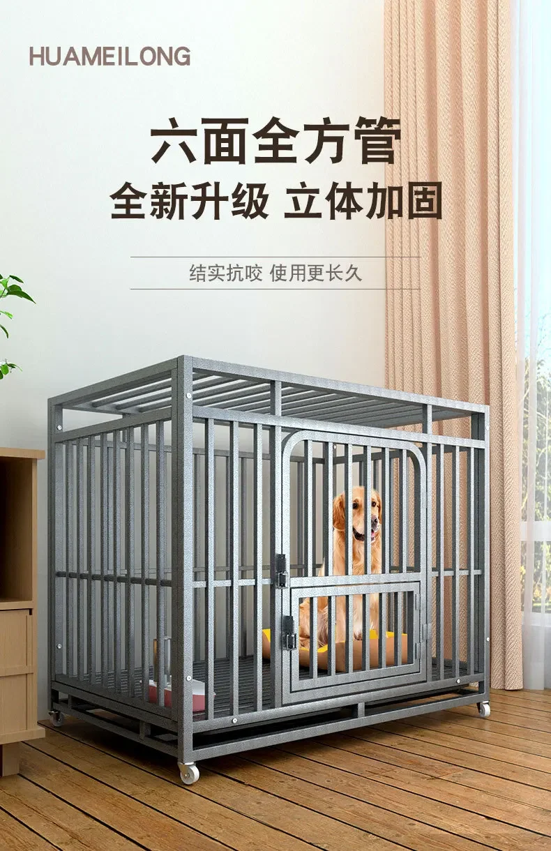 Jaulas grandes para perros, con tubos cuadrados gruesos, interiores, con inodoros, de hierro