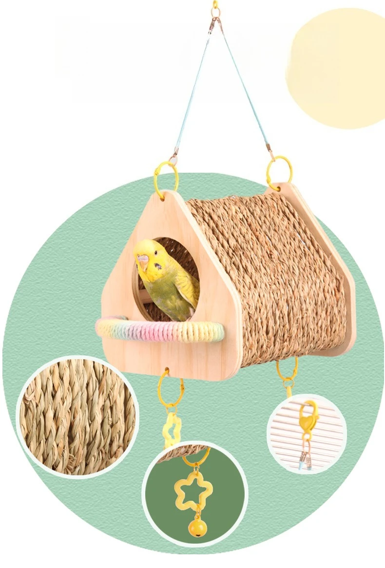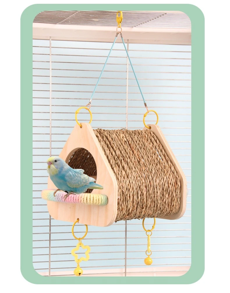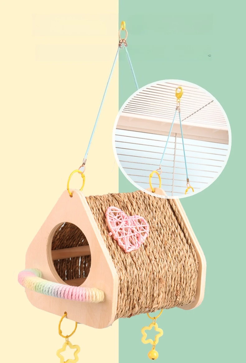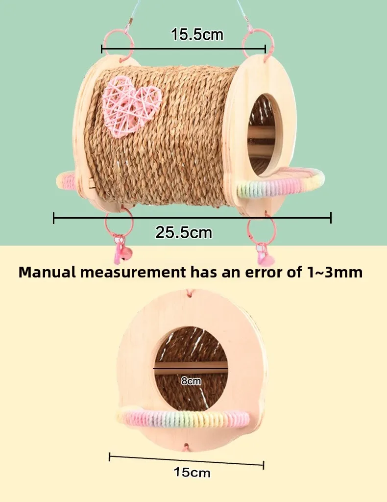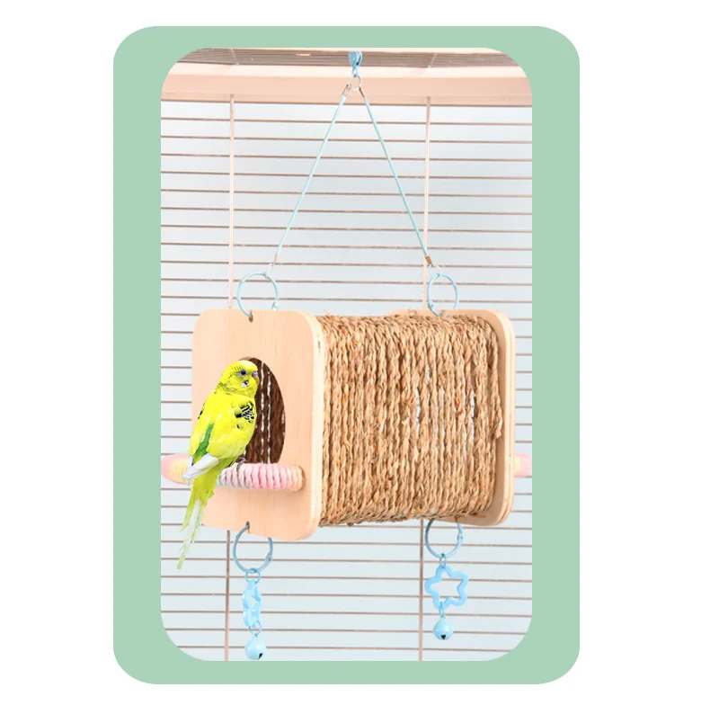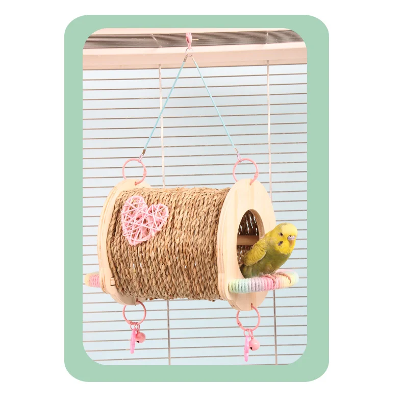 Jaulas para pájaros de madera maciza, jaula colgante de paja para loros, túnel, peonías, loros, nido de pájaros durmientes, accesorios para el hogar, suministros para loros