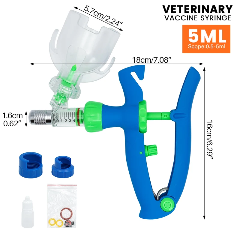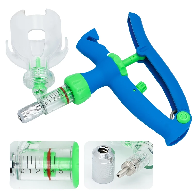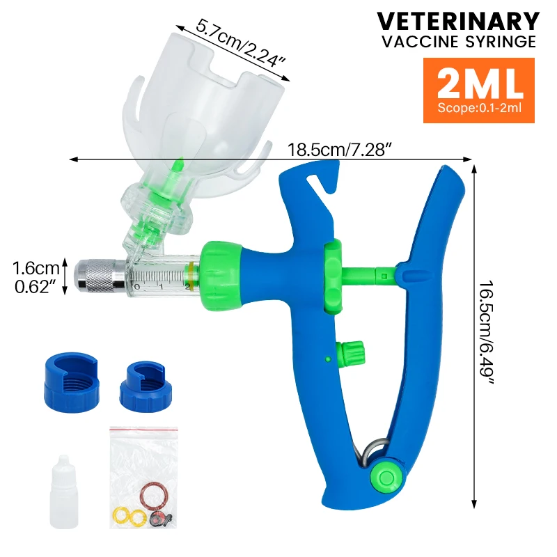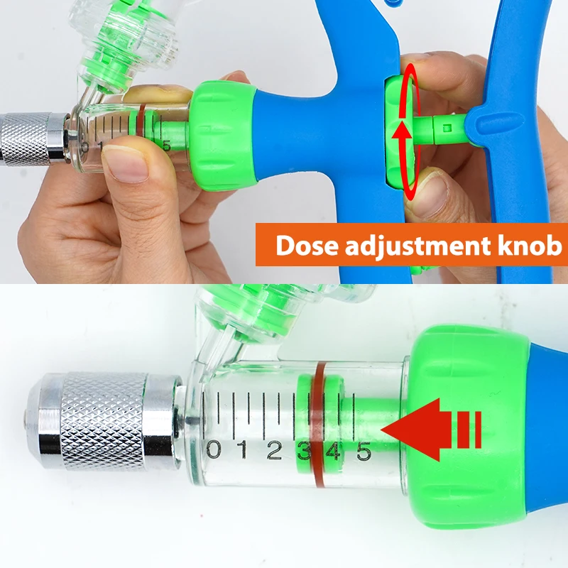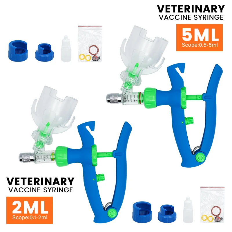 Jeringa continua veterinaria automática de 2/5ml, jeringa ajustable para animales, inyector de vacuna duradero para aves de corral, herramienta veterinaria