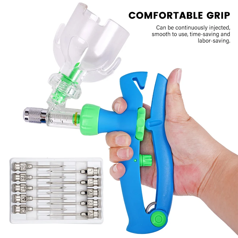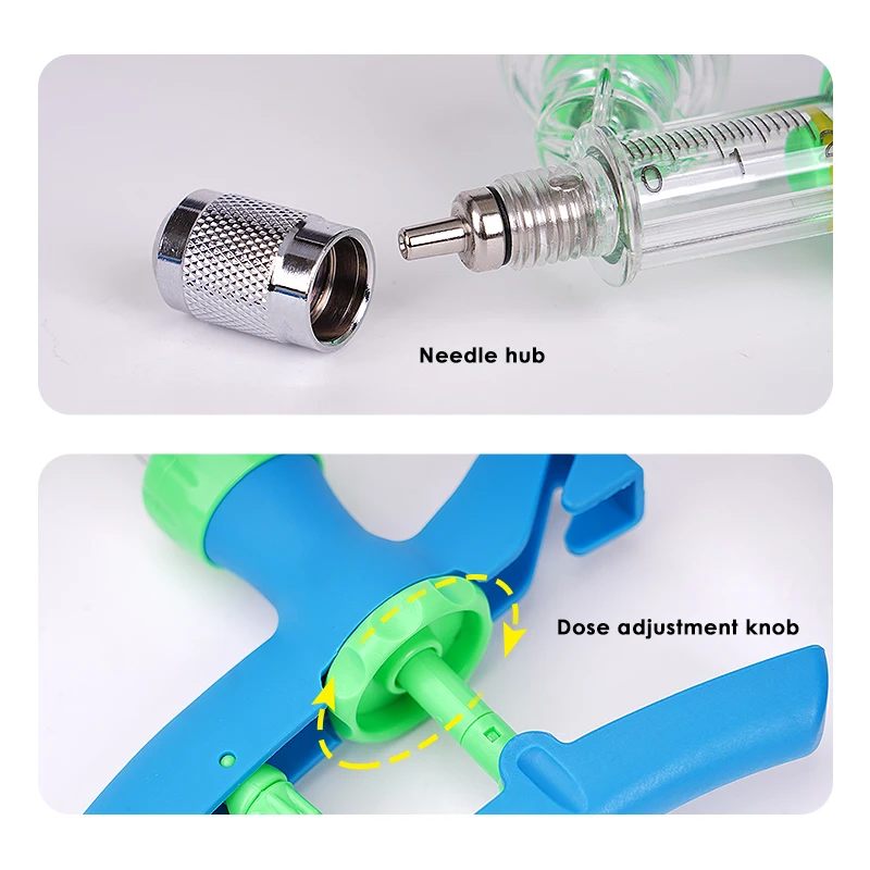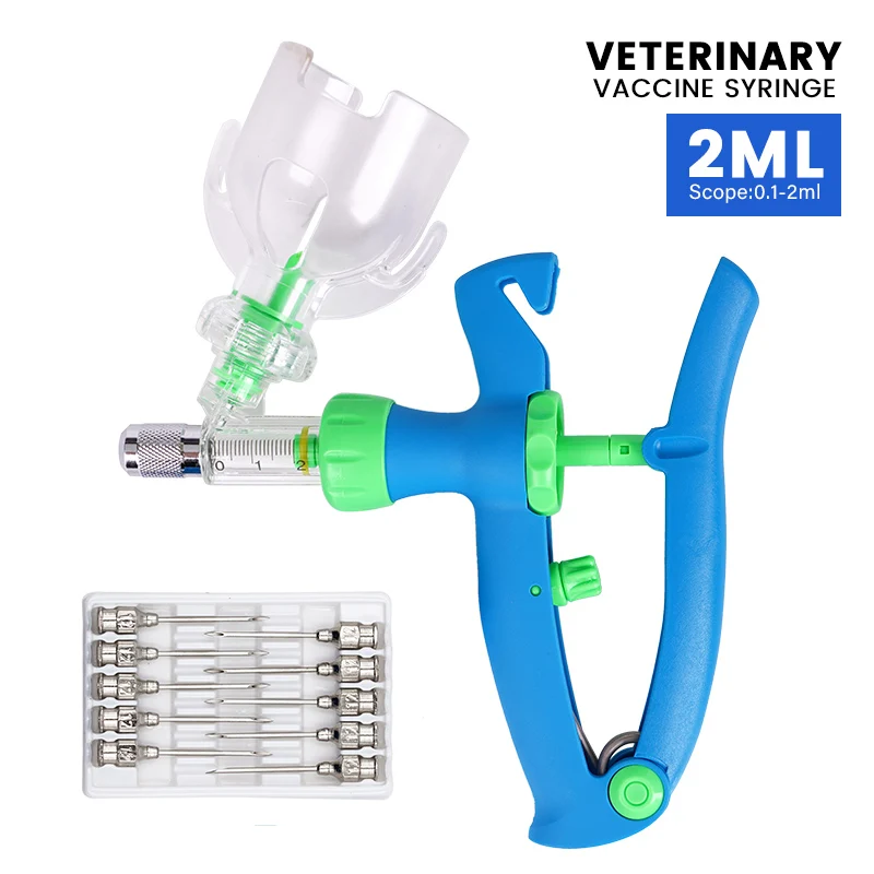 Jeringa continua automática veterinarios de 2/5ml con agujas, inyección de animales, suministros de inyector de granja de aves de corral vacina ajustable