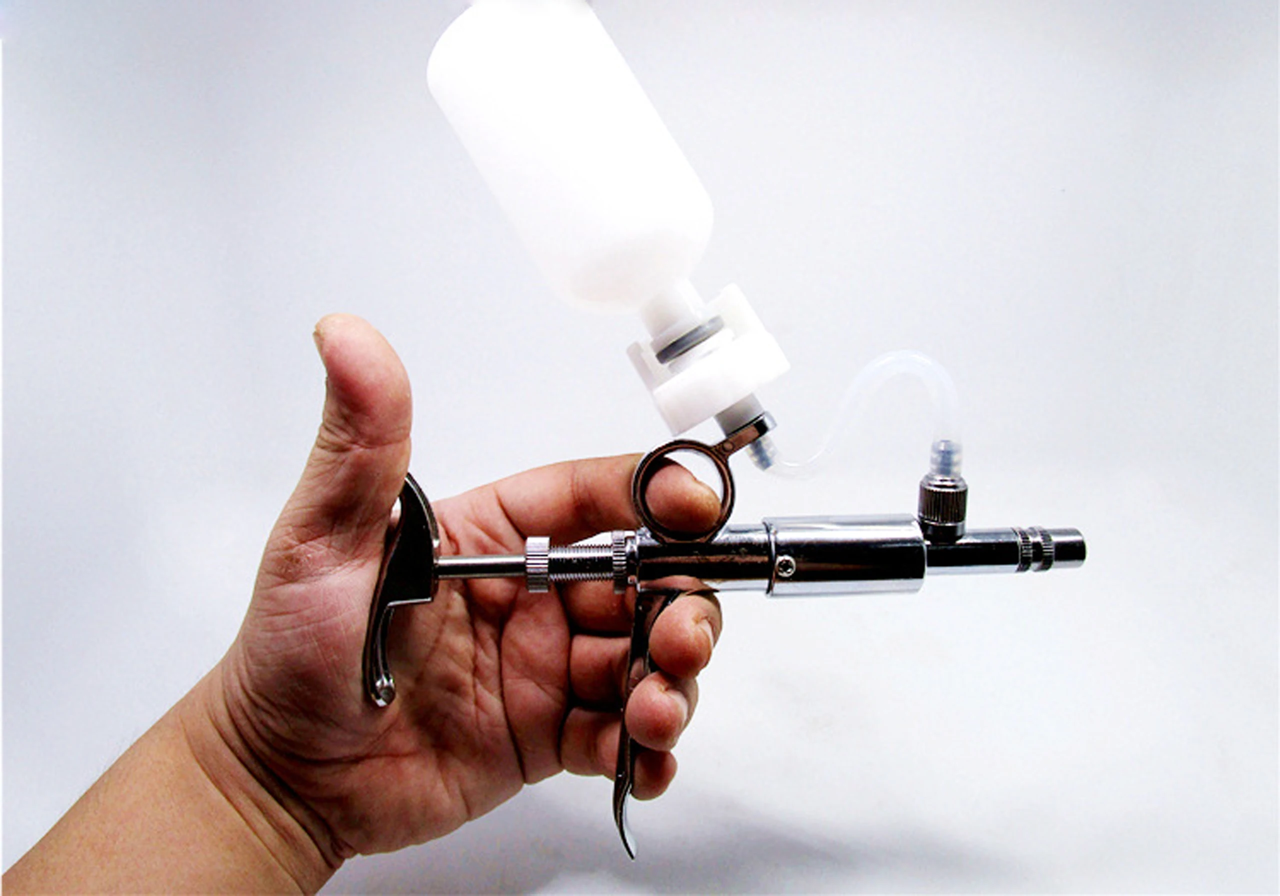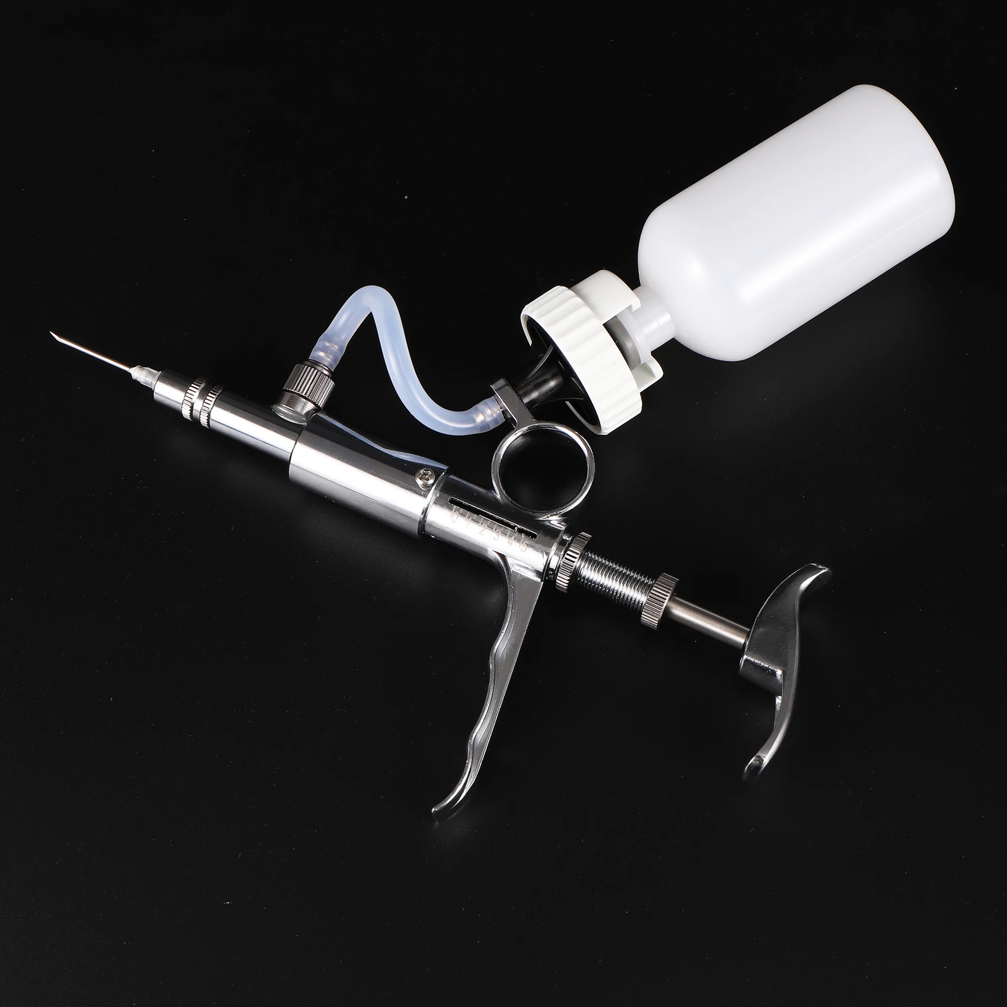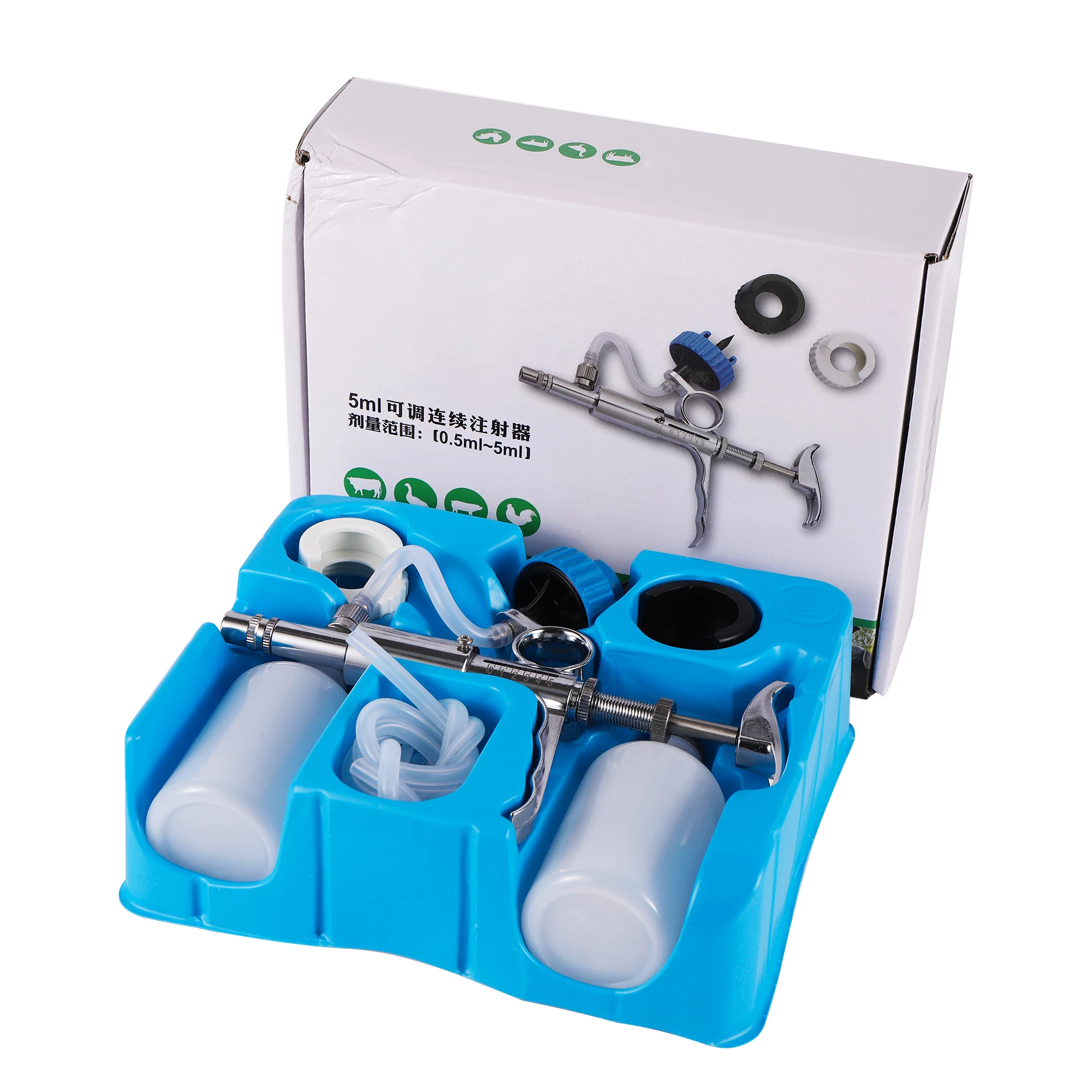 Jeringa continua automática para ganado, equipo veterinario con botellas, vacuna de Metal, granja multifunción, 0,5-5ml, 1 Juego
