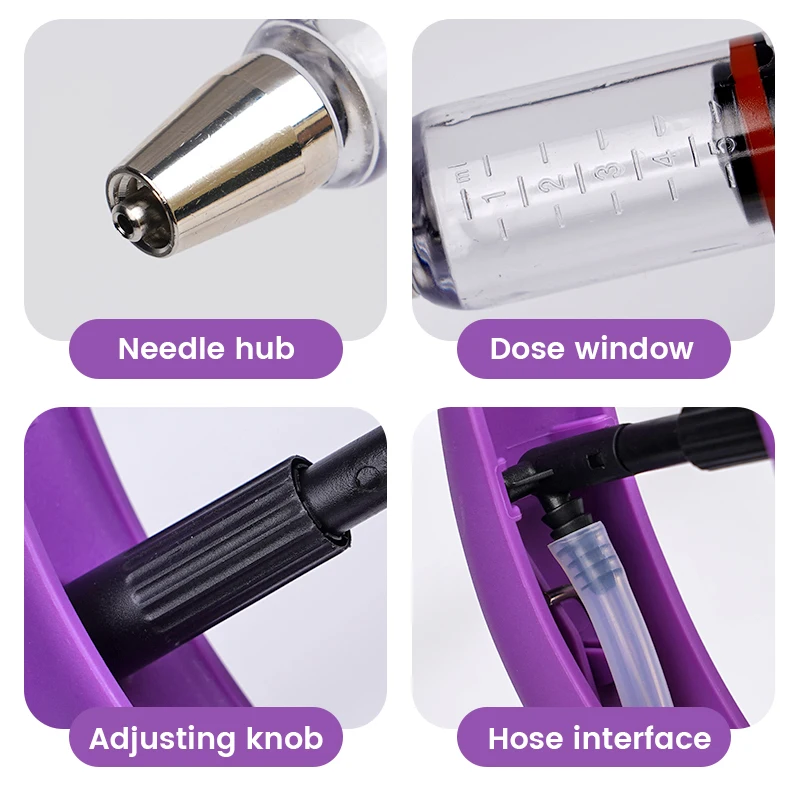 1.Viene con un tubo de silicona (1 metro de longitud) y una aguja larga, que se puede insertar en botellas de vacuna de diversas especificaciones.