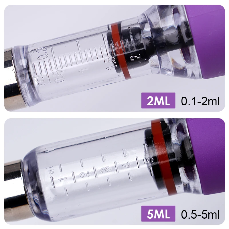Rango ajustable de 4,2 ml 0,1-2 ml.Rango ajustable de 5 ml de 0,5 a 5 ml.