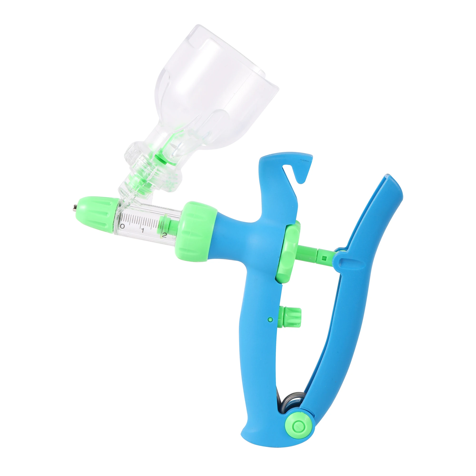 Nombre: jeringa para vacuna de ganadoMaterial: de plásticoCaracterística: ajustable¡Tamaño: Appr! 18x16cmDosis: 2ml / 5ml / 10ml
