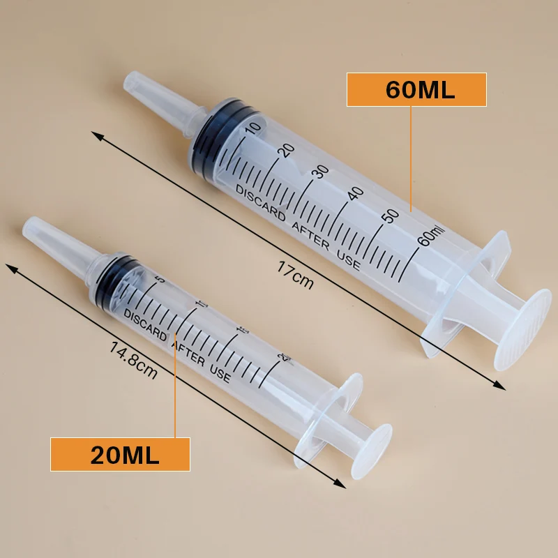 Jeringa de plástico reutilizable de 20ml/ 60ml para alimentación de animales, herramientas de medición de nutrientes líquidos para experimentos, hidroponía Industrial