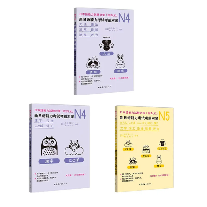 JLPT BJT-libros de texto de aprendizaje japonés, 3 libros de prueba de habilidad en idioma japonés, libros de preparación N4/N5, Kanji, idioma de gramática