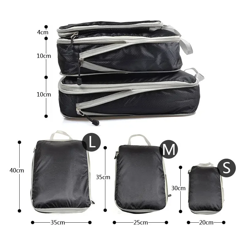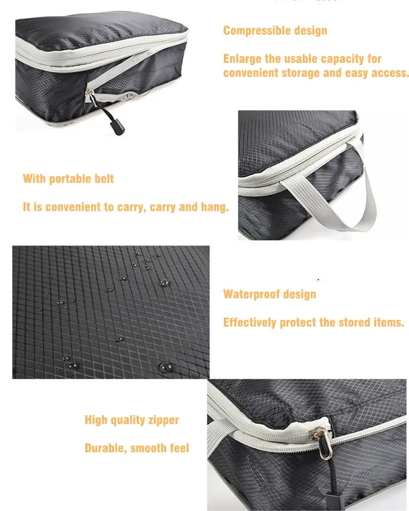 Nuestros cubos de embalaje pueden resolver su problema empacando cuidadosamente toda su ropa en nuestras bolsas que ahorran espacio. Te permite guardar y organizar fácilmente tu ropa, lo que hace que sea fácil de empacar e incluso más fácil de desembalar. Su ropa no quedará más arrugada y no se aplastará durante su viaje. Le ahorra mucho tiempo y energía en el embalaje.