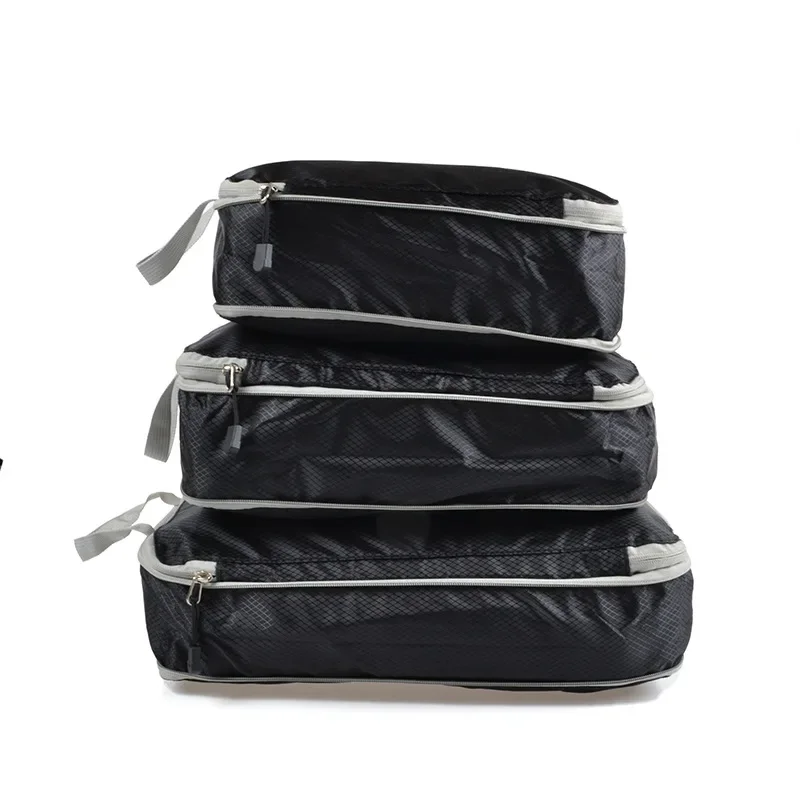 Juego de/3 piezas, bolsa de almacenamiento de viaje de embalaje comprimible, cubos, Maleta de viaje impermeable, portátil de nailon con bolso, organizador de equipaje