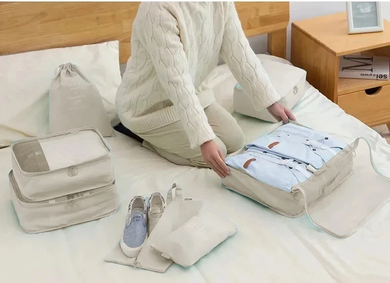• Conjunto versátil:Este juego incluye una variedad de bolsas de almacenamiento, desde cubos de embalaje para maletas hasta bolsas para zapatos, para todos sus elementos esenciales de viaje.
