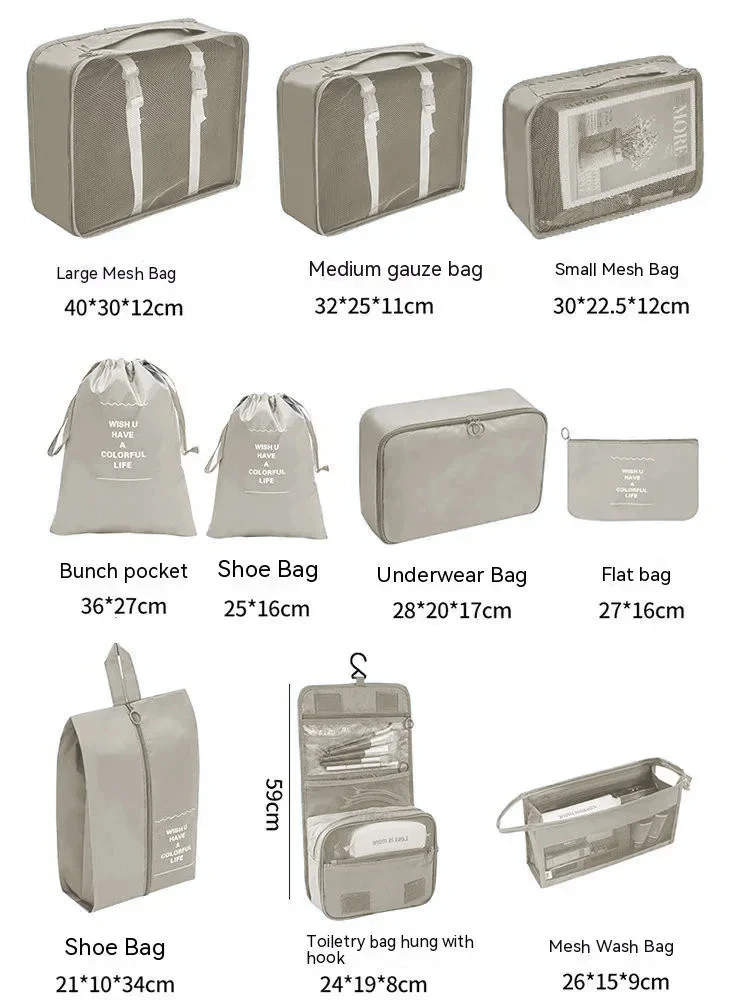 • Almacenamiento eficiente:Estas bolsas de almacenamiento permiten una organización eficiente de sus artículos de viaje, asegurándose de tener todo lo que necesita al alcance de su mano.