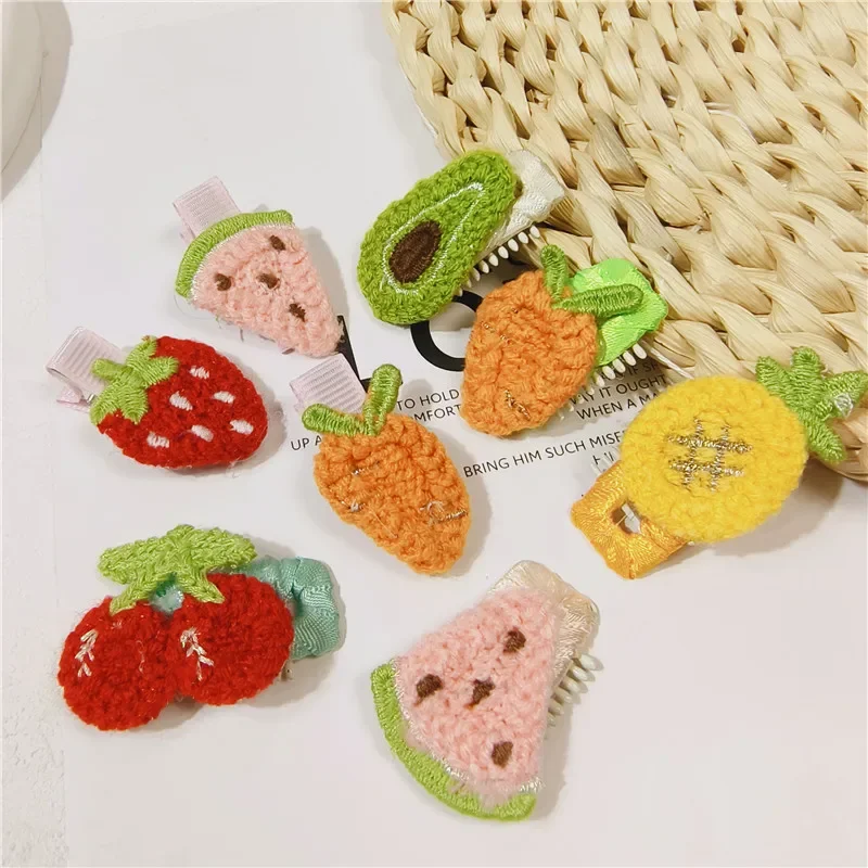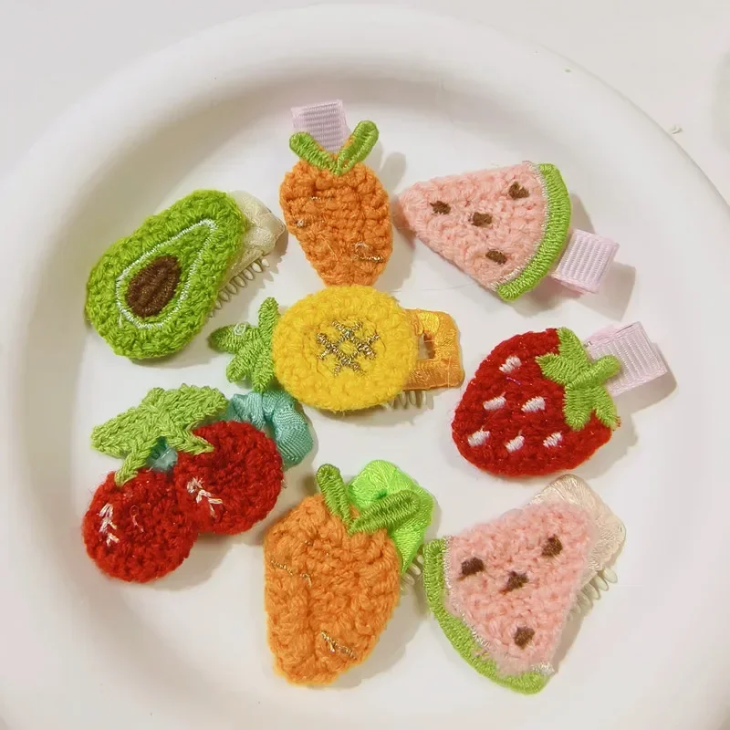 Juego de accesorios para el cabello de dibujos animados hechos a mano para el cuidado de mascotas, lindas zanahorias, cerezas, sandías, decoraciones para perro, gato, horquilla para mascota