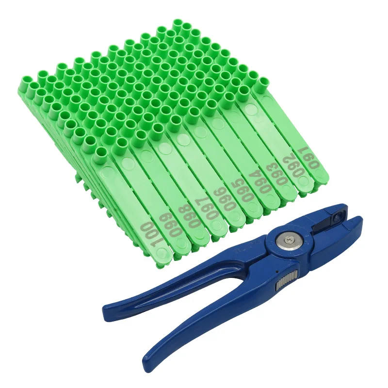Paquete 3: 1 alicate de etiqueta de oreja + 100 alicates de etiqueta de oreja (numeración: 001 ~ 100).