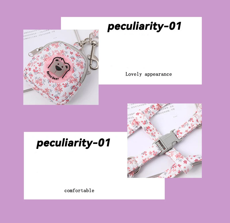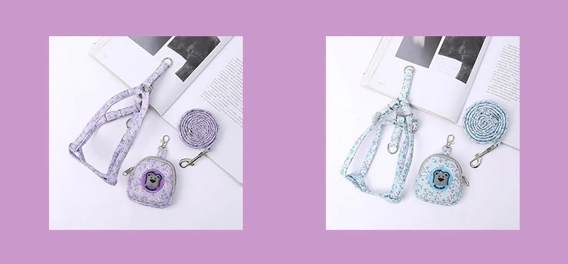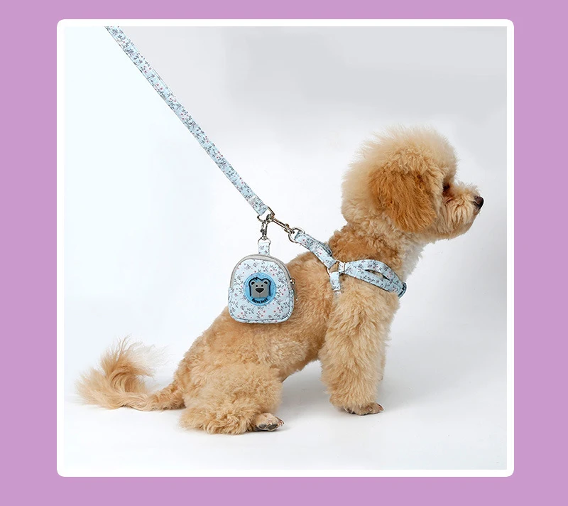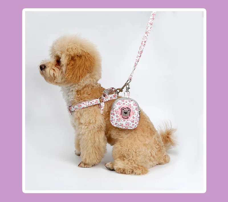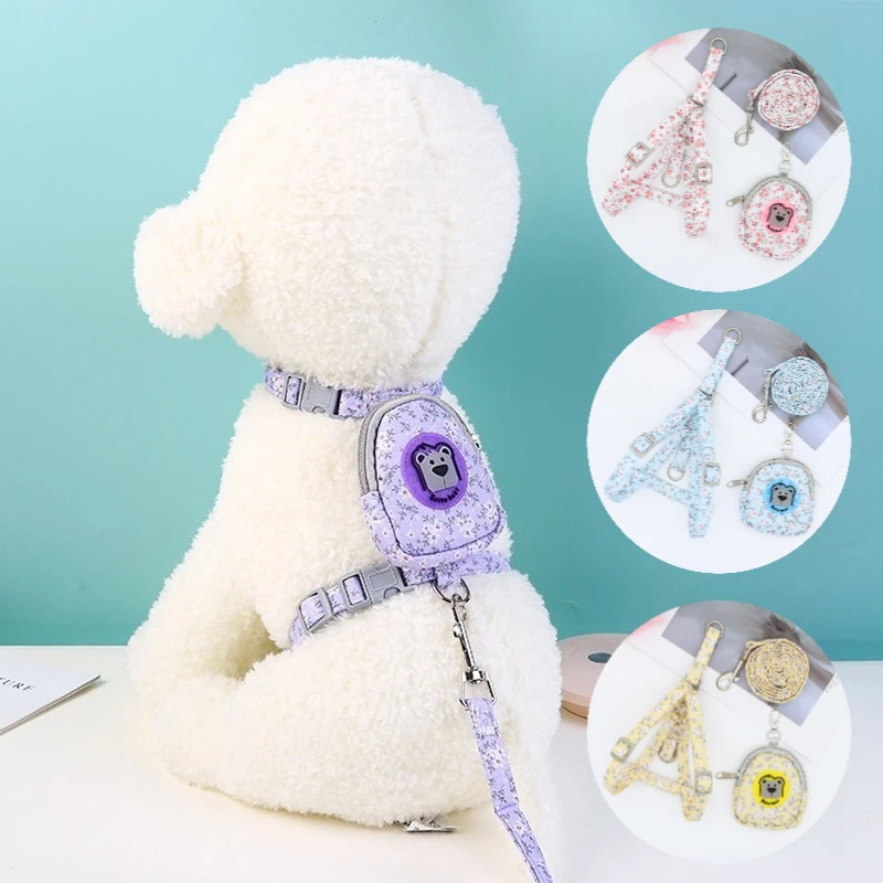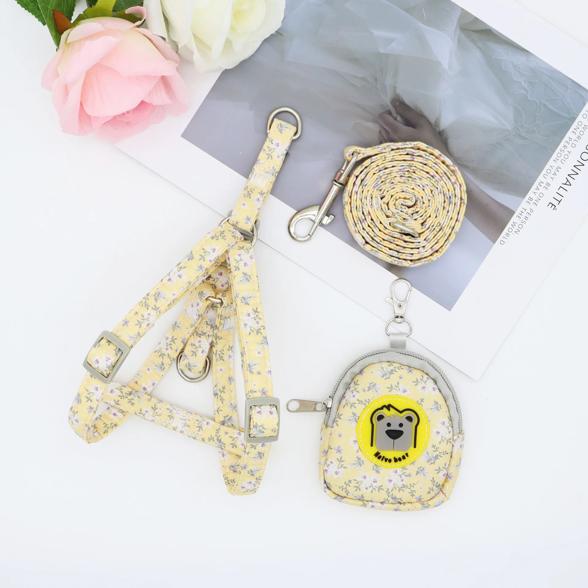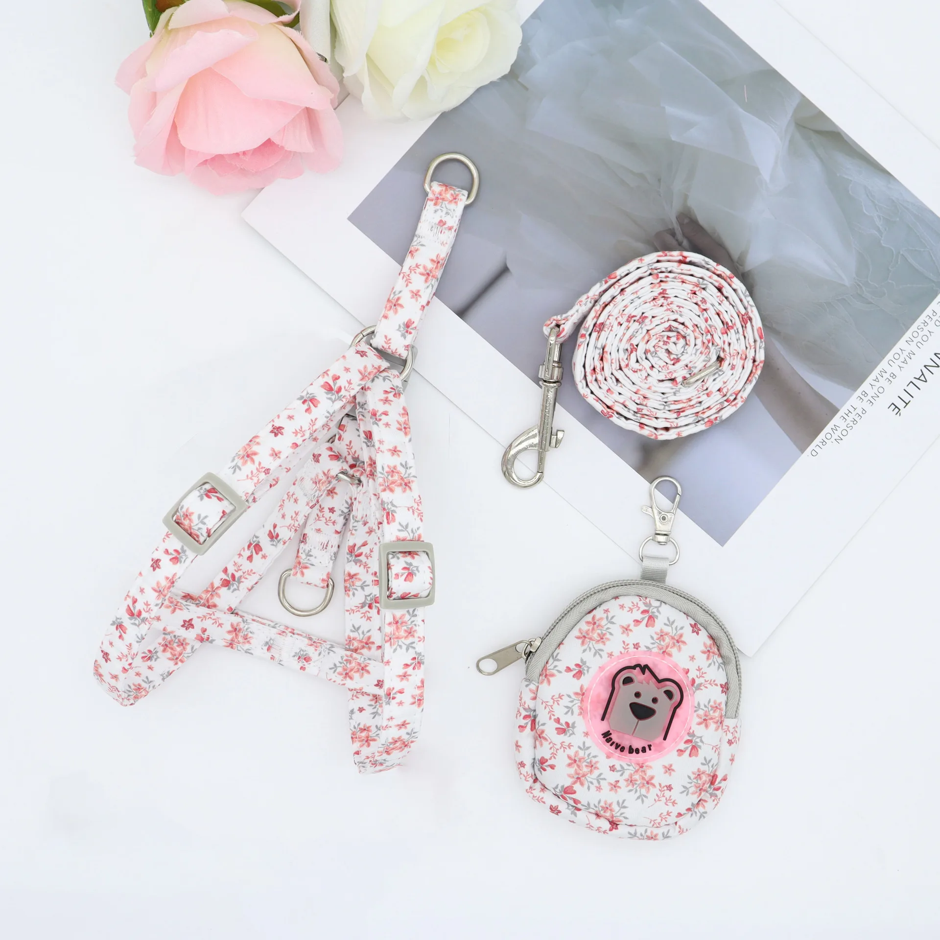 Juego de arnés y correa florales para mascotas, chaleco ajustable para perros y gatos con bolsa para aperitivos, accesorios para caminar al aire libre de 1,2 m