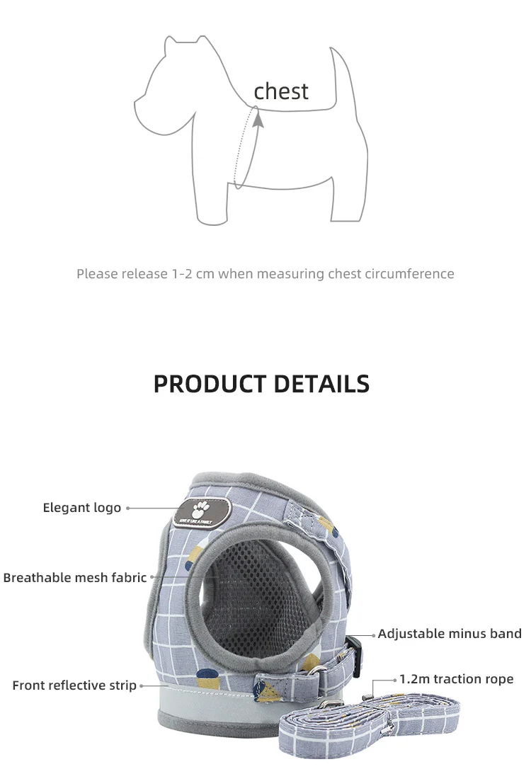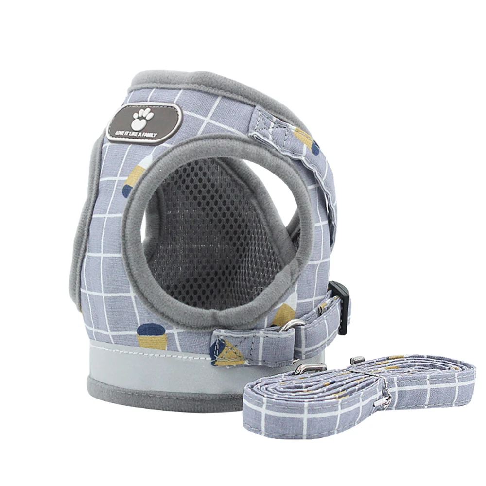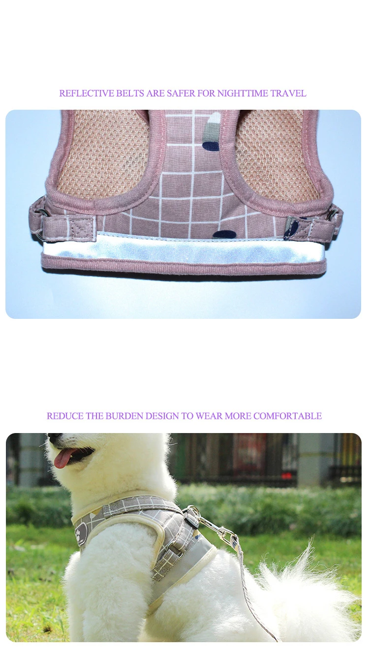 Conjunto de arnés y correa para perros, correas para el pecho de mascotas, chaleco de seguridad reflectante y transpirable para perros pequeños y medianos, gatos salen, llevar plomo y caminar