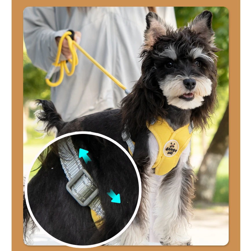 Seguridad altamente reflectanteConstruido con correas reflectantes + logotipo que brillan con poca luz, lo que garantiza visibilidad durante los paseos nocturnos y mantiene a salvo tanto a las mascotas como a los dueños.Diseño sin estrangulamiento estilo XLa estructura ergonómica transversal distribuye uniformemente la presión, previene daños a la tráquea y elimina los riesgos de asfixia de los collares tradicionales.Sistema a prueba de fugas1Correas ajustables en el pecho/cuello para un ajuste personalizado; 2 hebillas traseras dobles para mayor seguridad, incluso para perros enérgicos.Correa con asa de espuma cómodaEl agarre amplio + la espuma transpirable absorbe el sudor, reduce la fatiga de las manos y minimiza los golpes de tirón para caminar sin estrés.Material ligero y transpirableLos arneses para perros adoptan un diseño de tela de poliéster y algodón, relleno de esponja acolchada en el chaleco, lo que hace que el arnés para perros sea más suave y cómodo. El forro de malla de nailon duradero evita rozaduras y garantiza comodidad durante todo el día en cualquier temporada.