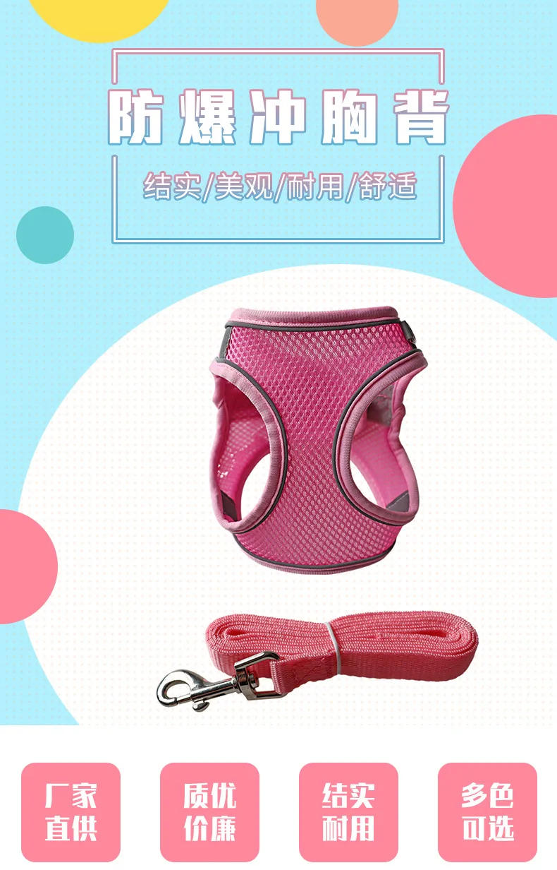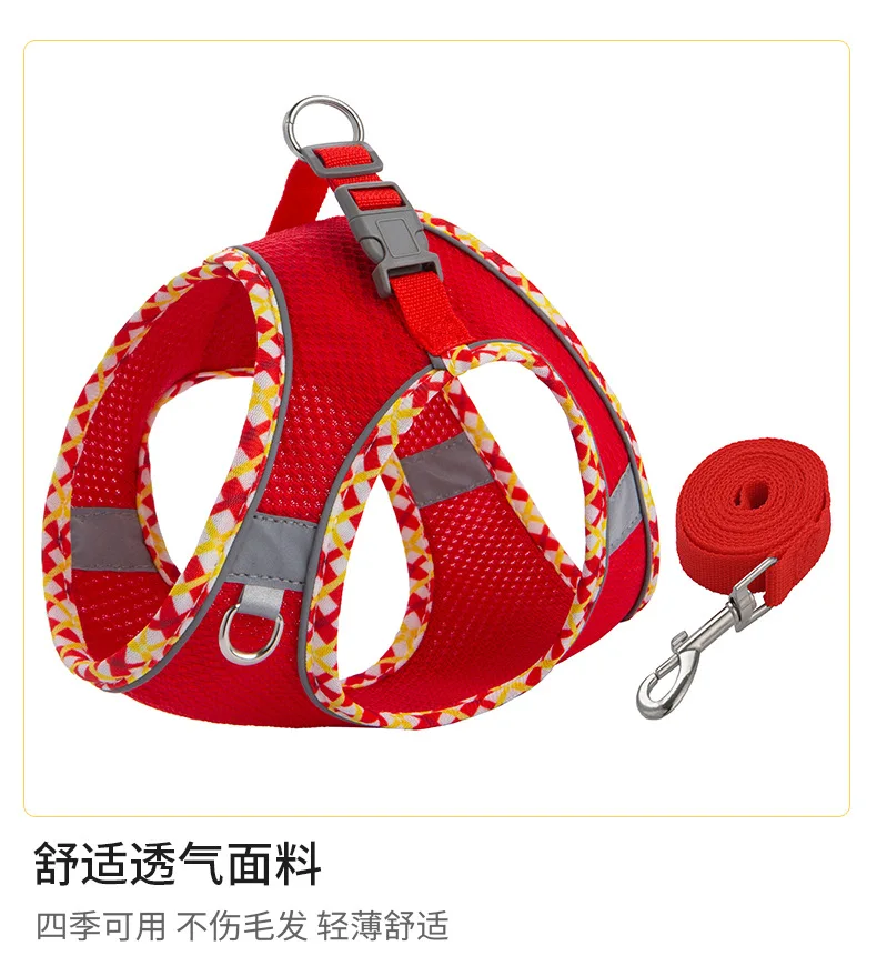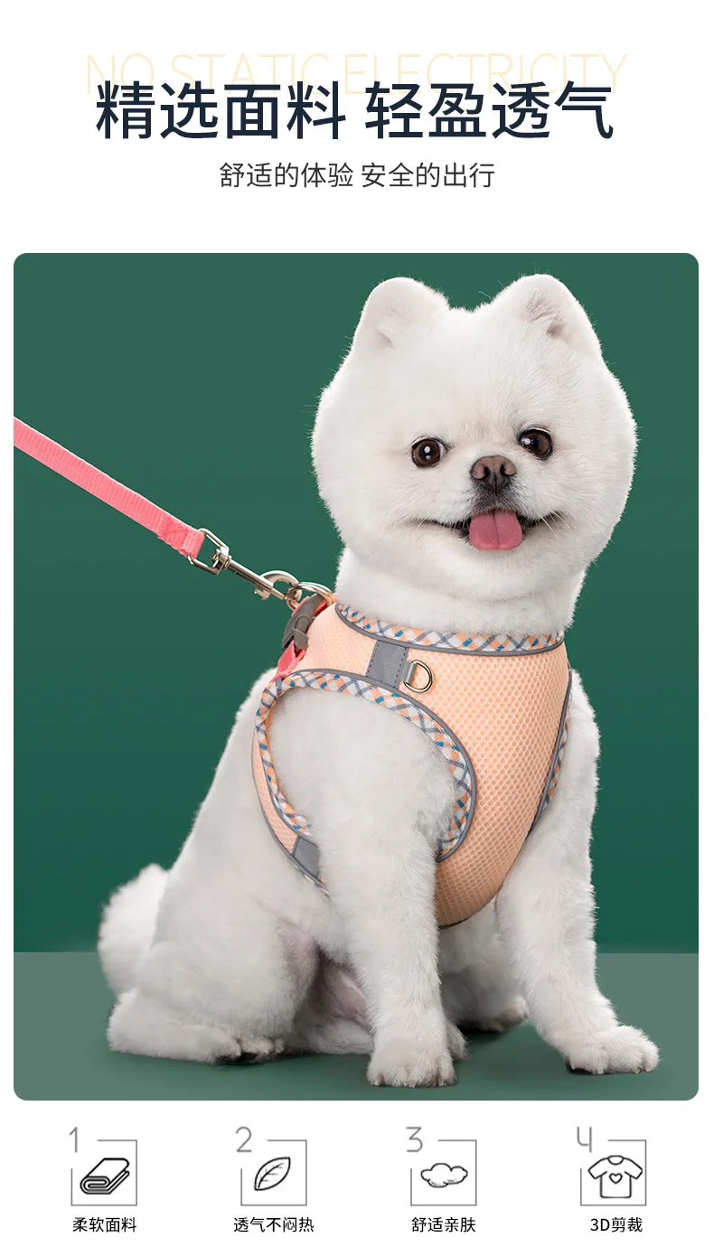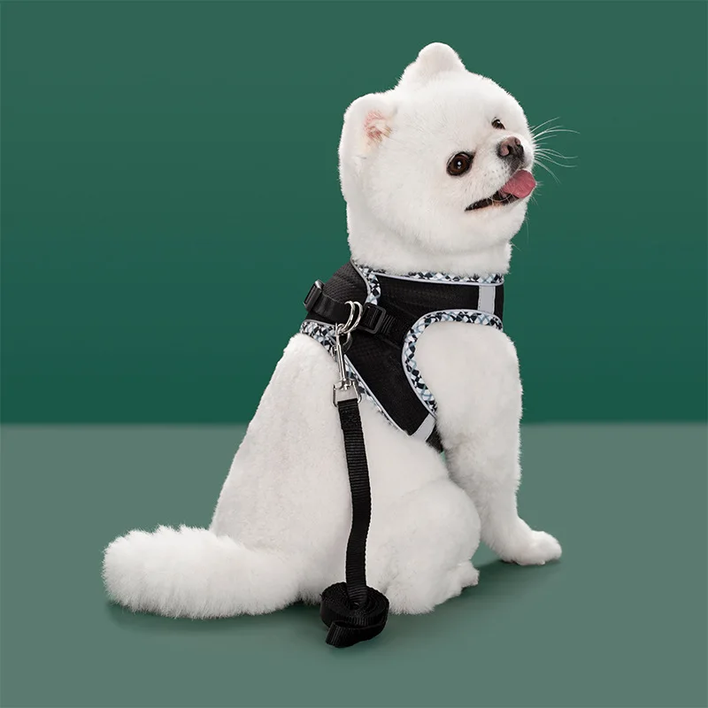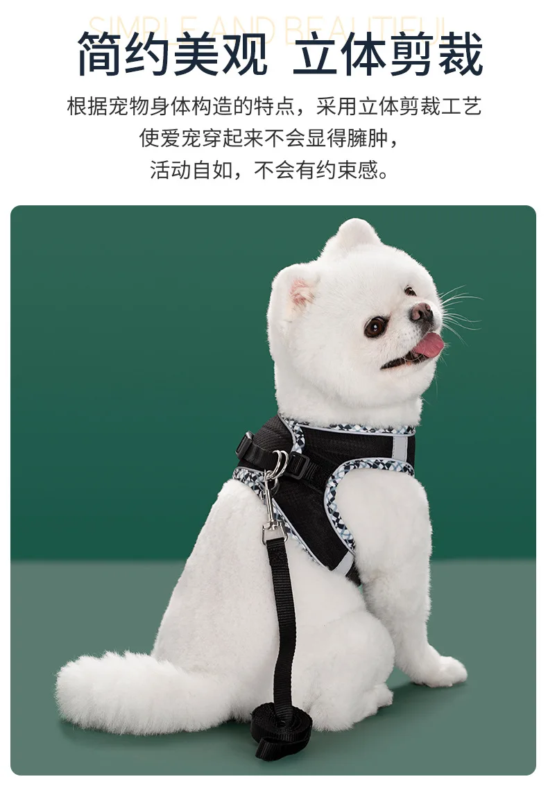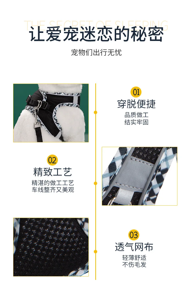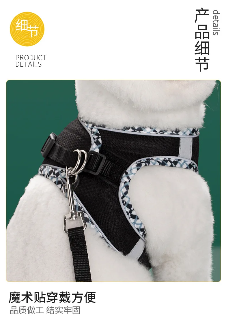 Ligero y transpirable; El arnés para perros está confeccionado con tela jacquard, que es de alta densidad, transpirable, tridimensional, suave y cómoda, y puede evitar masticaciones o desgarros.Tiene una durabilidad, resistencia a la tracción, resistencia al desgarro y resistencia a la fusión extremadamente altas.Tiene las características de absorción de humedad y transpiración, creando sequedad y brindando a las mascotas una experiencia de uso extraordinaria.