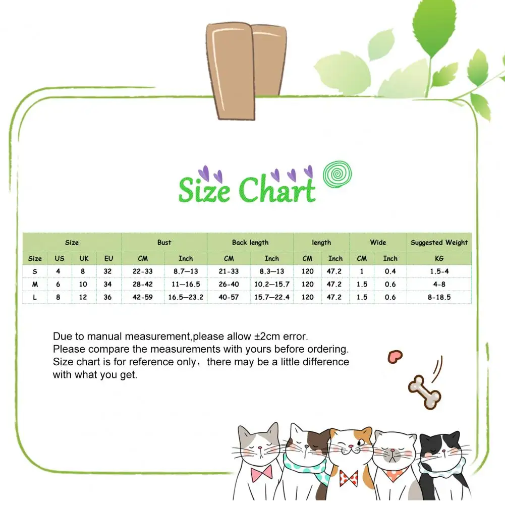 S, L: 120cm/47,24 ", W: 1cm/0,39", Pecho: 22cm x 33cm/8,66 "x 12,99", Circunferencia del cuello: 21cm x 33cm/8,27 "x 12,99" (aprox.) M, L: 120cm/47,24 ", W: 1,5 cm/0,59", Pecho: 28cm x 42cm/11,02 "x 16,54", Circunferencia del cuello: 26cm x 40cm/10,24 "x 15,75" (aprox.) L, L: 120cm/47,24 ", W: 1,5 cm/0,59", pecho: 42cm x 59cm/16,54 "x 23,23", circunferencia del cuello: 40cm x 57cm/15,75 "x 22,44" (aprox.)