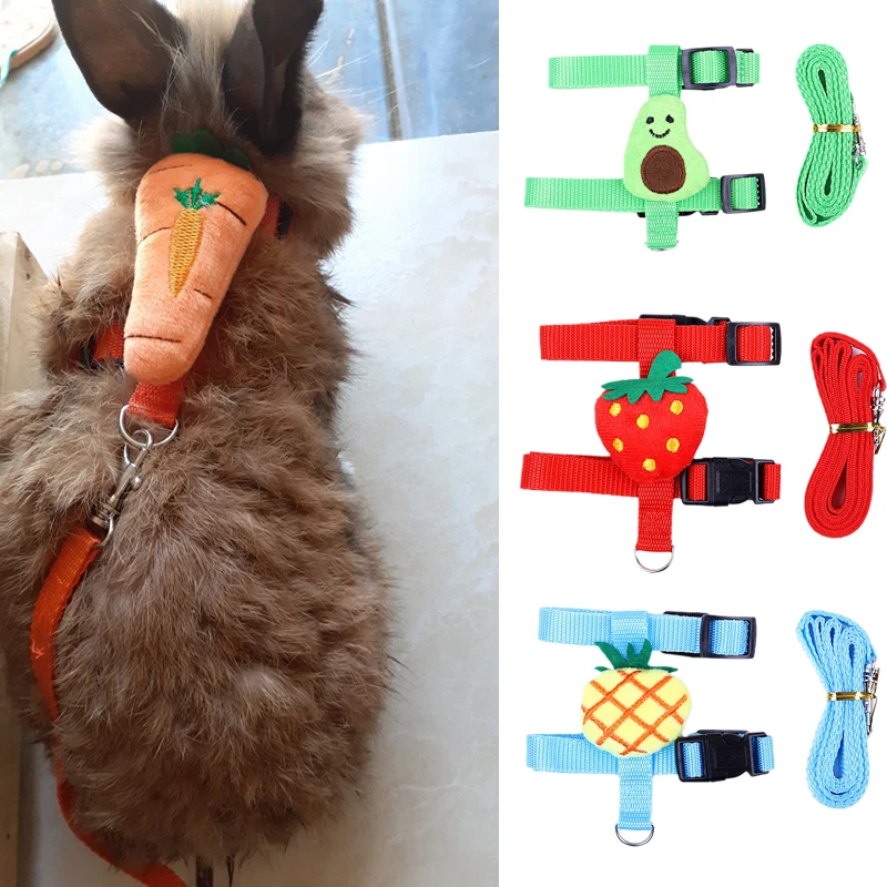 Juego de arnés y correa para conejos, accesorios para conejillos de indias, animales pequeños, suministros para exteriores, estilo de dibujos animados