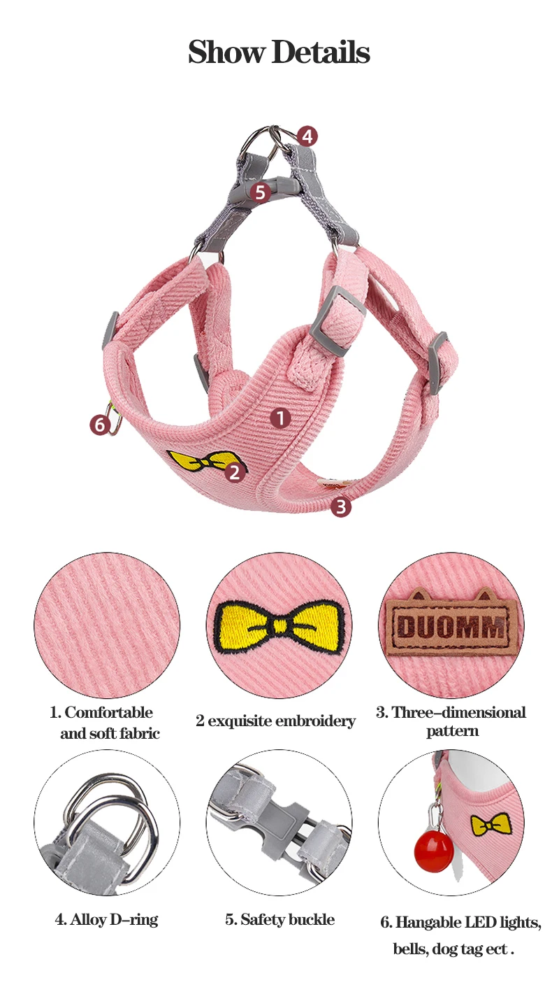 4. Este arnés tiene hebillas ajustables, que se pueden ajustar fácilmente para adaptarse a cada raza de cachorro.