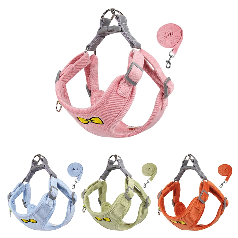 Juego de arnés y correa de pana de verano para perros pequeños y medianos, arnés transpirable para cachorros y gatos, chaleco para mascotas, correa para caminar Chihuahua
