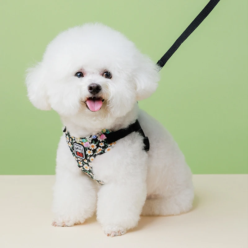 Juego de arnés y correa para perro con estampado de Margarita, reflectante, ajustable, para mascotas pequeñas, Chihuahua, Yorkshire