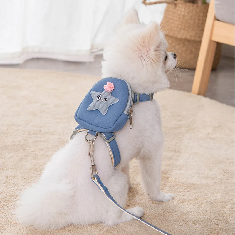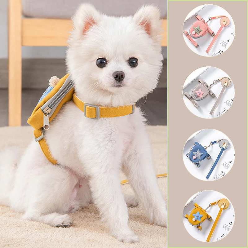 Juego de arnés y correa para perro, mochila extraíble personalizada con bolsa para perros pequeños, Chihuahua, Pomerania, aperitivos para cachorros, suministros para mascotas