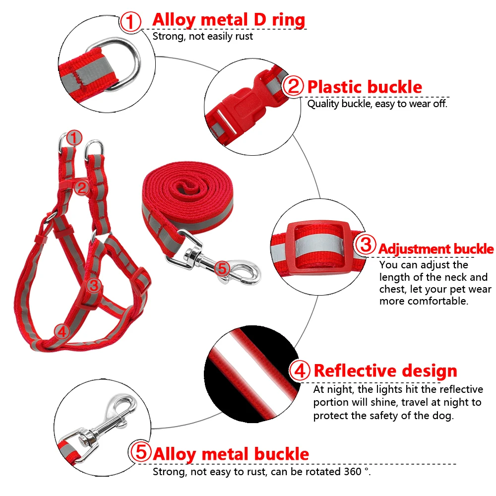 Product Name: Reflective Nylon Dog Harness Leash Set for Small Medium Dogs Puppy Chihuahua Yorkie 7 Colors Pet Vest Harness Lead Set