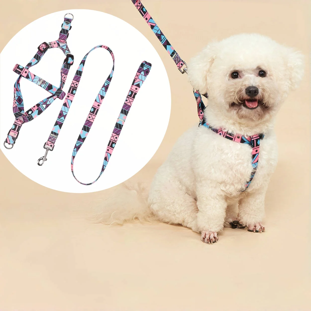 Juego de arnés y correas para mascotas, diseño ajustable, estampado de nailon, a la moda, suministros para perros pequeños, cuerda de plomo para caminar