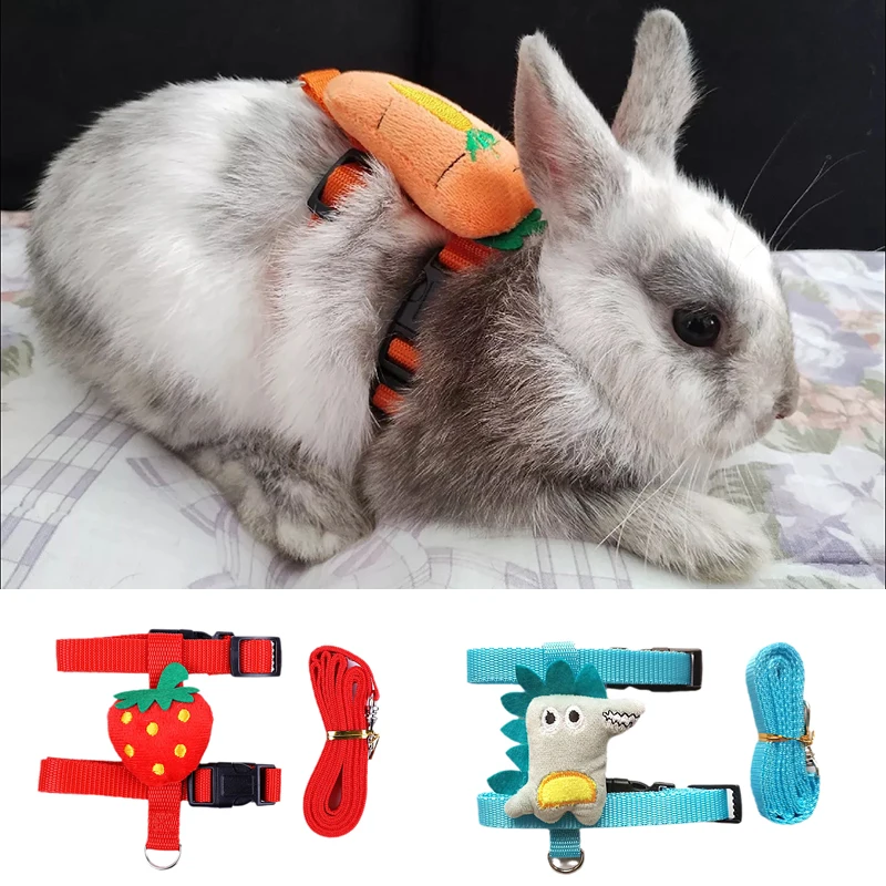Juego de arneses y correa para hámster y conejito de dibujos animados, artículos para mascotas para caminar, arnés para animales pequeños, conejillo de indias, accesorios para mascotas