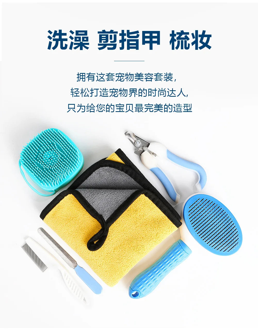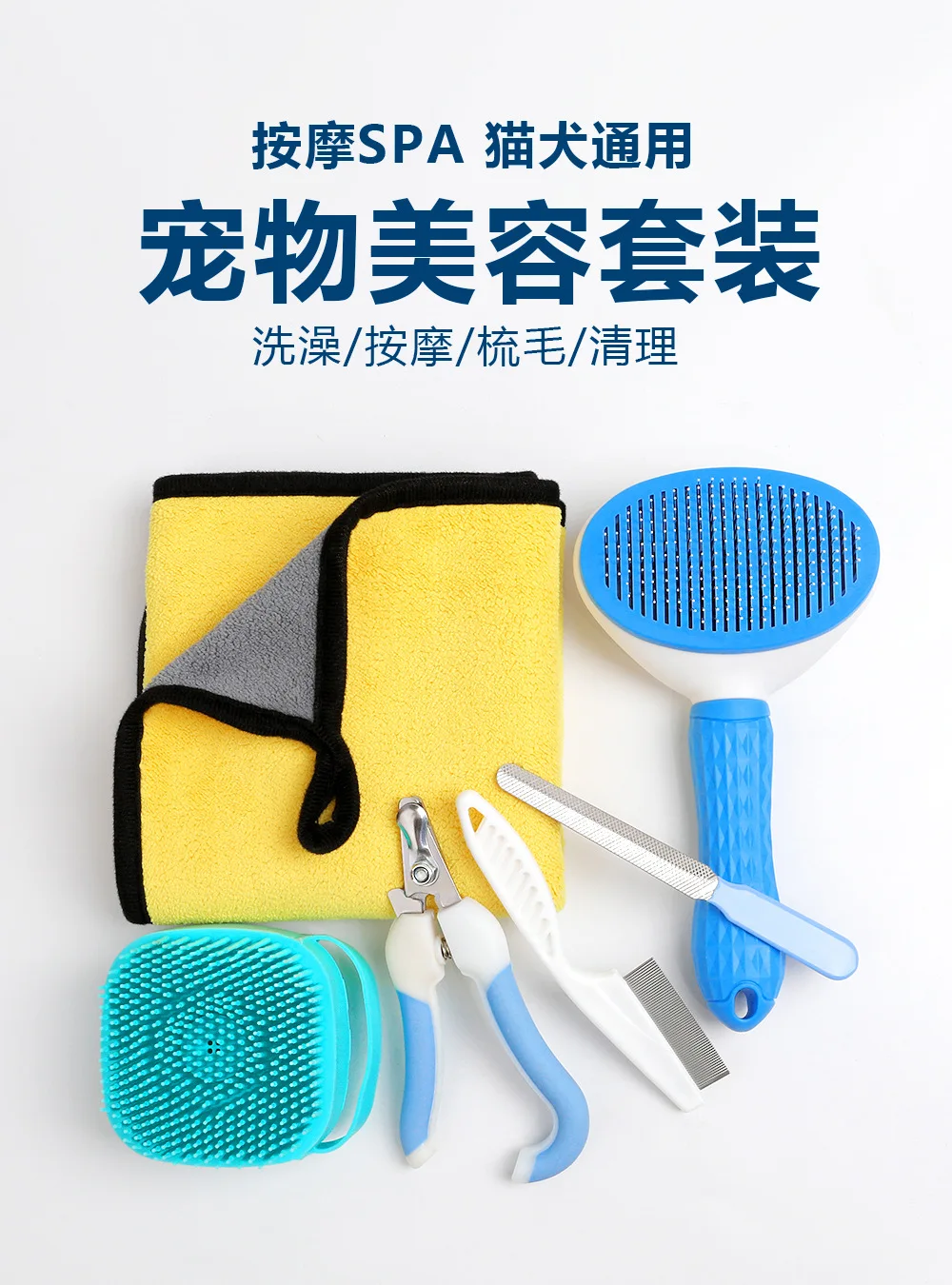 Juego de aseo para mascotas, peine de masaje para baño de limpieza, peine para Limpieza del cabello, toalla, peine para pulgas, artefacto Universal para gatos y perros, productos para mascotas