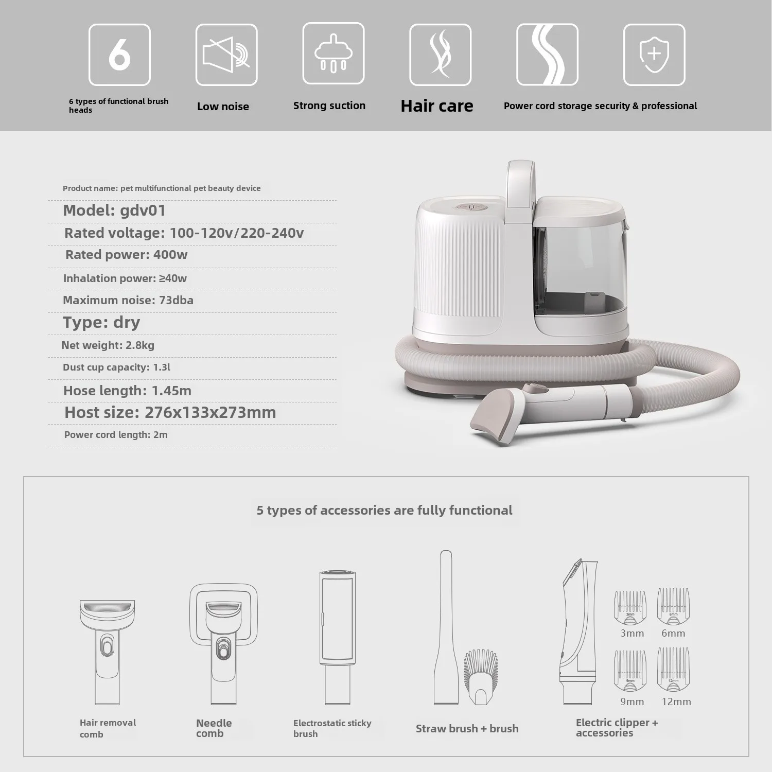 Juego de aspiradora multifunción para mascotas, cortadora de pelo eléctrica con ventosa para gatos y perros