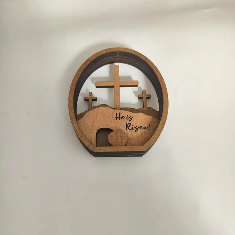 Juego de bandeja de Pascua para tumba de Jesús, Kit de bandeja de escena de tumba de madera, letrero de Jesús, decoraciones escalonadas, letrero católico de Natividad religiosa hecho a mano