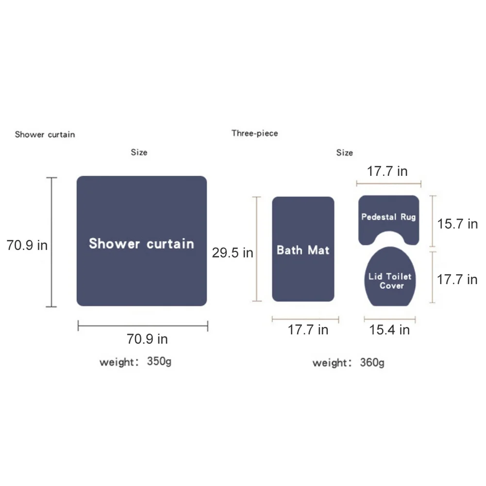 Lista de embalaje: 1 unidad * Cortina de ducha 1 unidad * alfombrilla cuadrada 1 unidad * Alfombrilla en forma de U 1 unidad * alfombrilla de inodoro 12 * ganchos de cortina de ducha